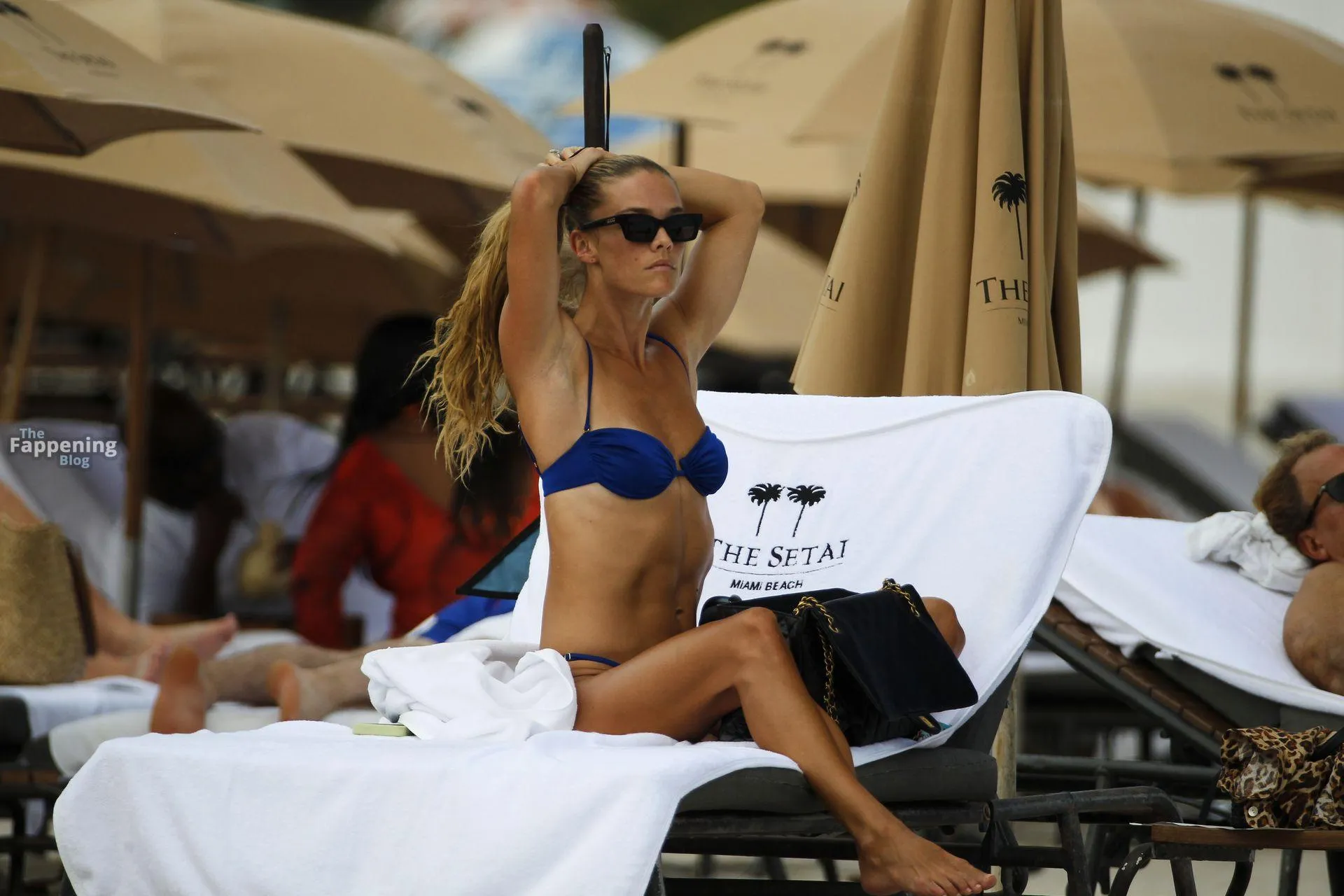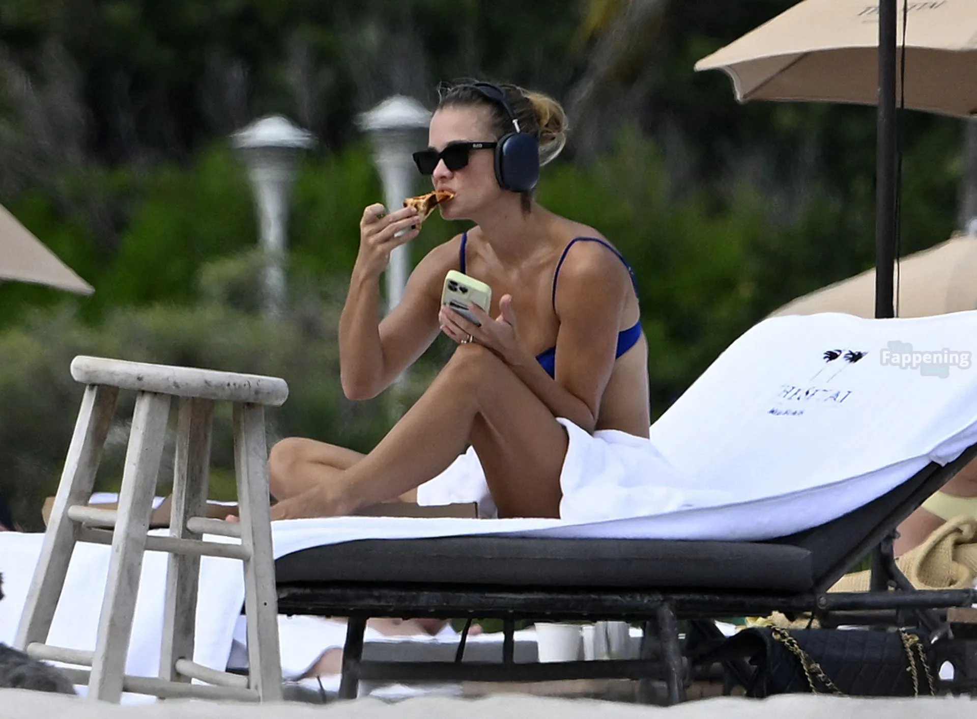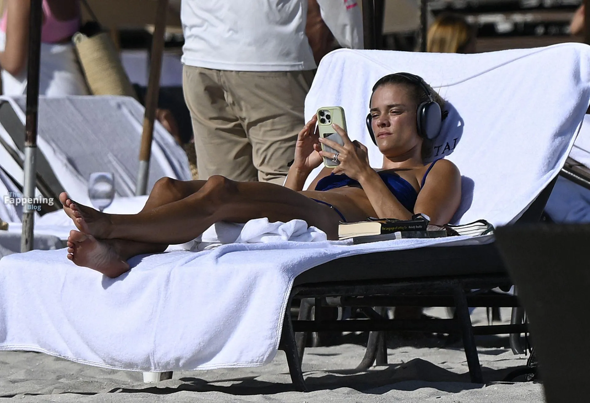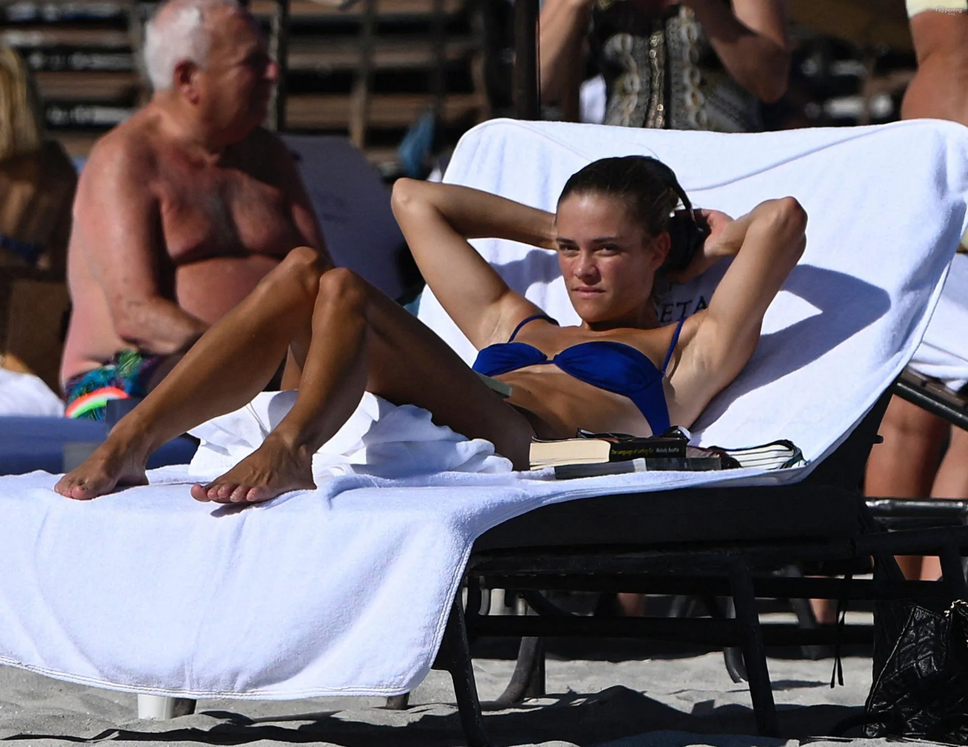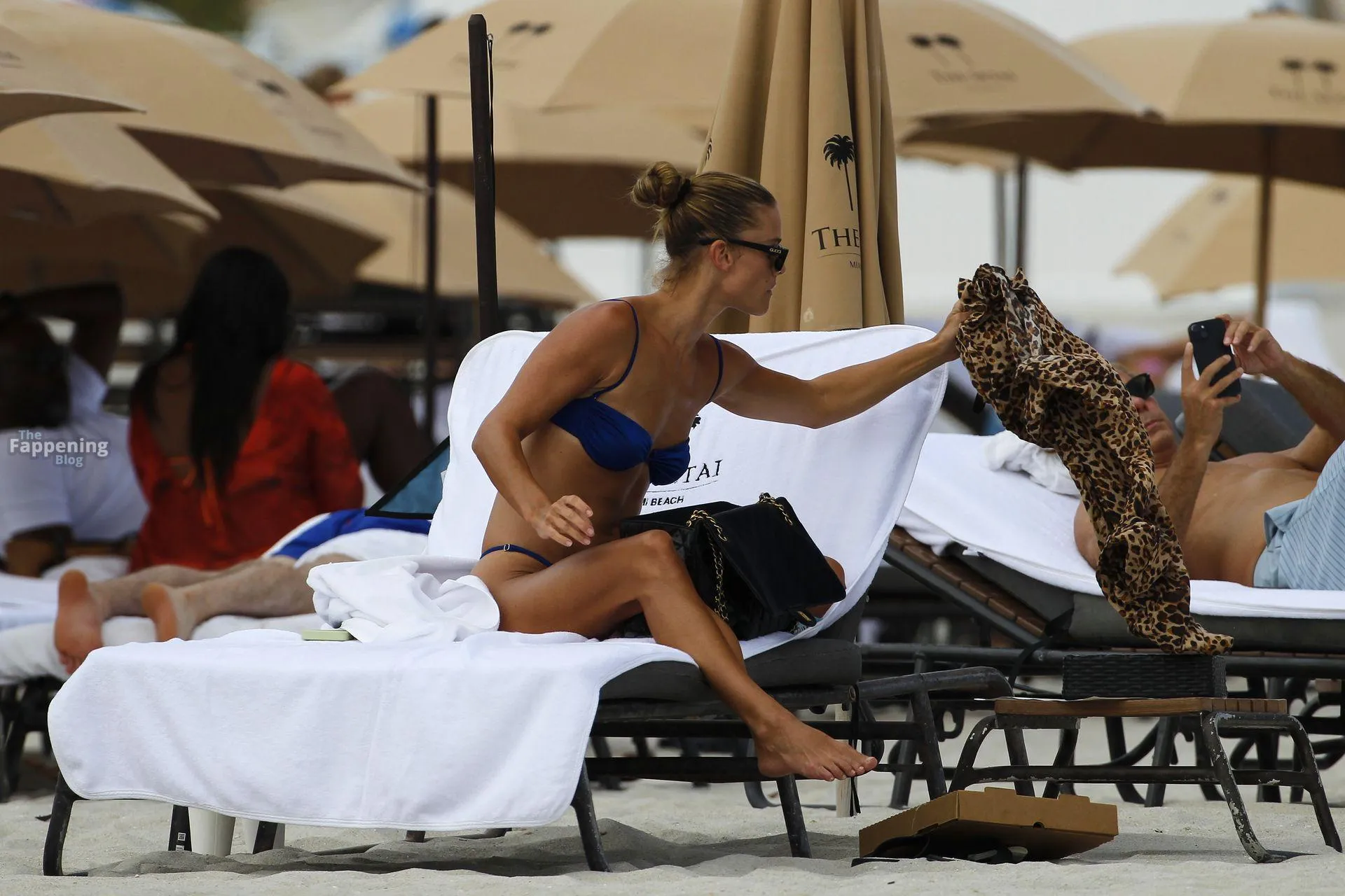 Danish model Nina Agdal was spotted soakin’ up the sun on Miami Beach, rockin’ a blue bikini before changing into a chic leopard print outfit.