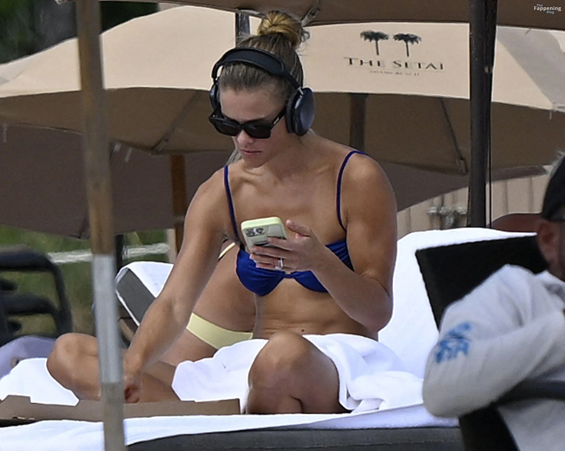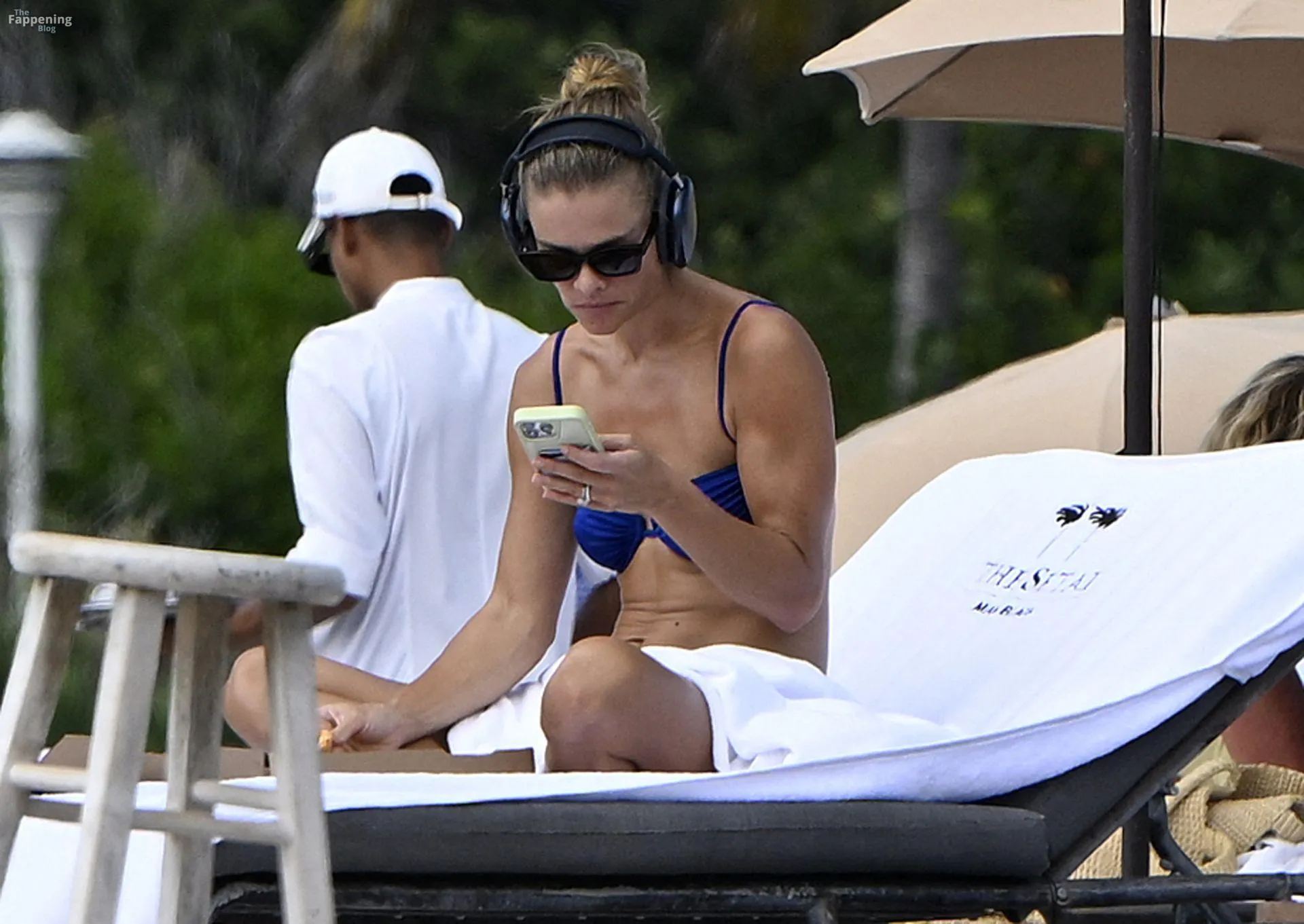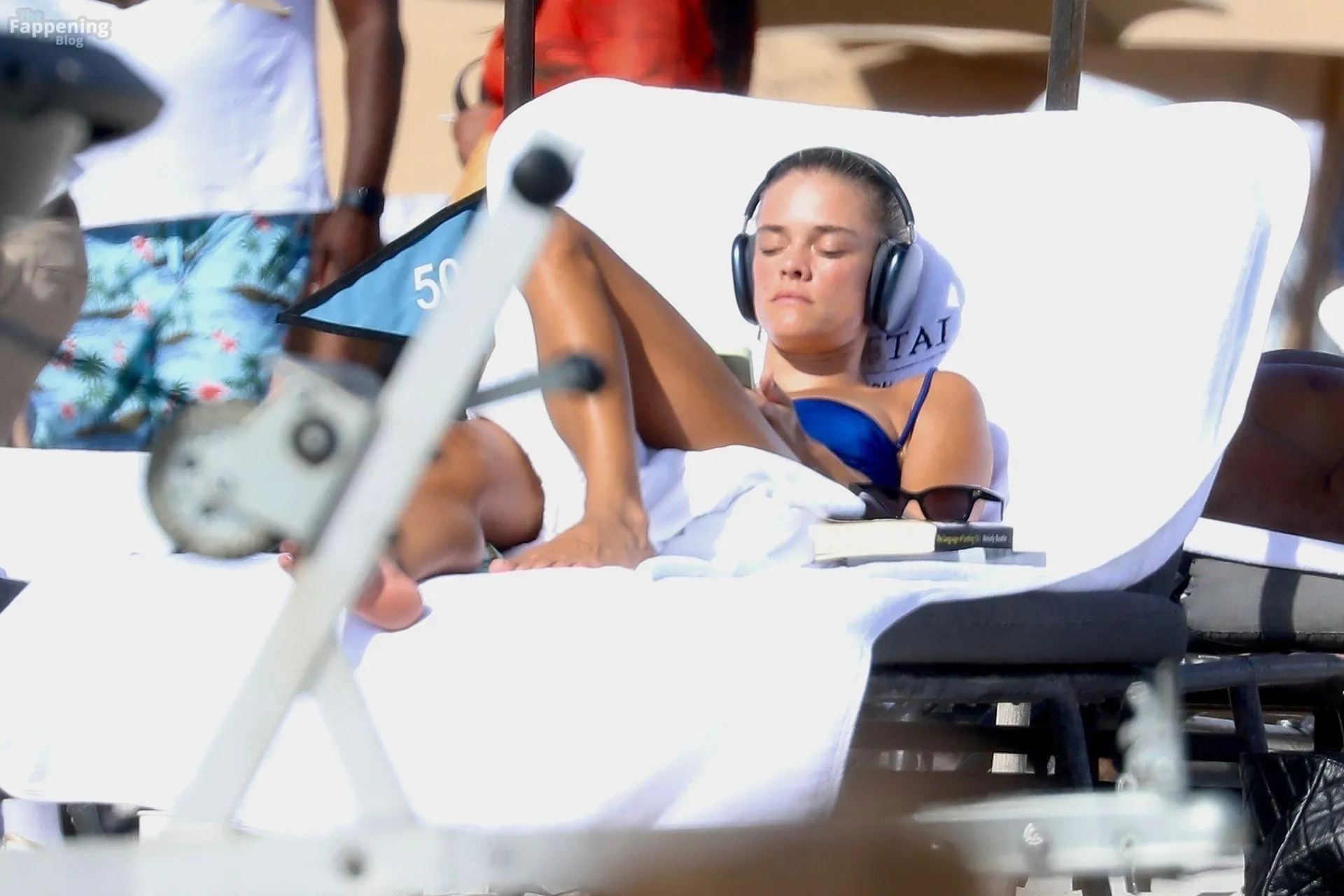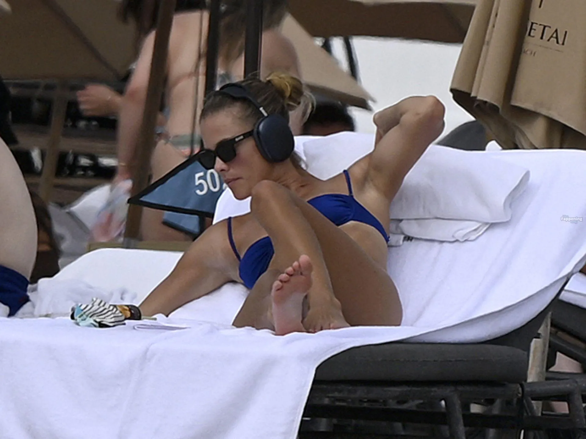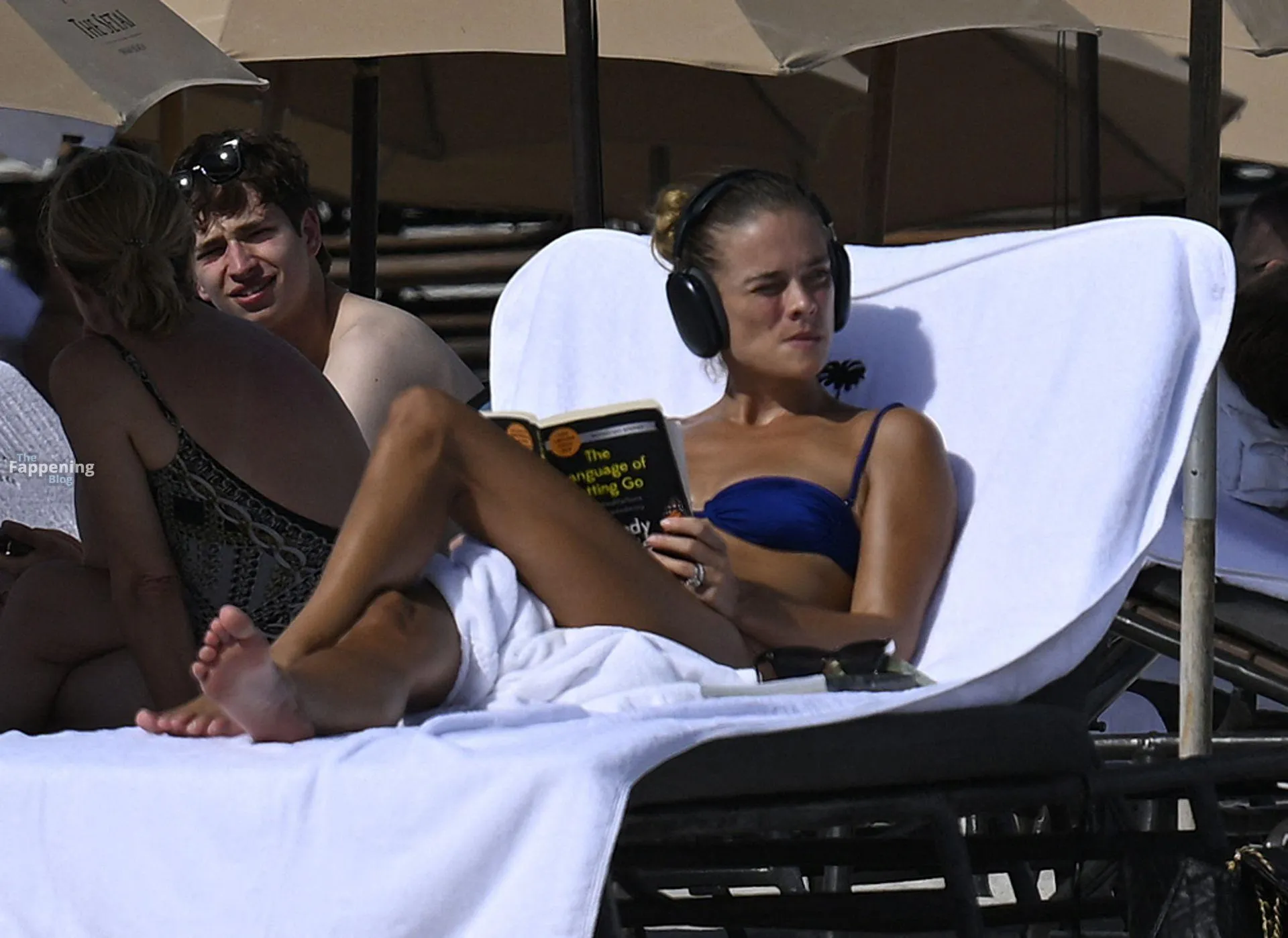 Danish model Nina Agdal was spotted soakin’ up the sun on Miami Beach, rockin’ a blue bikini before changing into a chic leopard print outfit.
