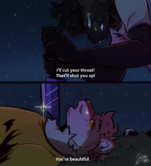 "You're beautiful." - a Princess Mononoke inspired illustration of mine and my partner's sonas