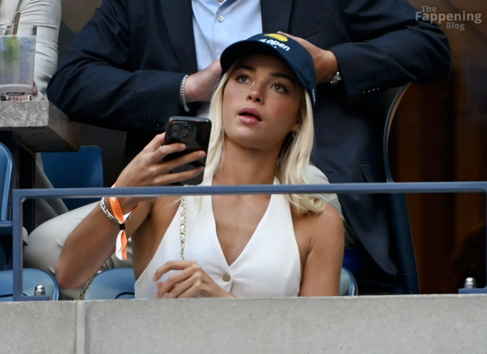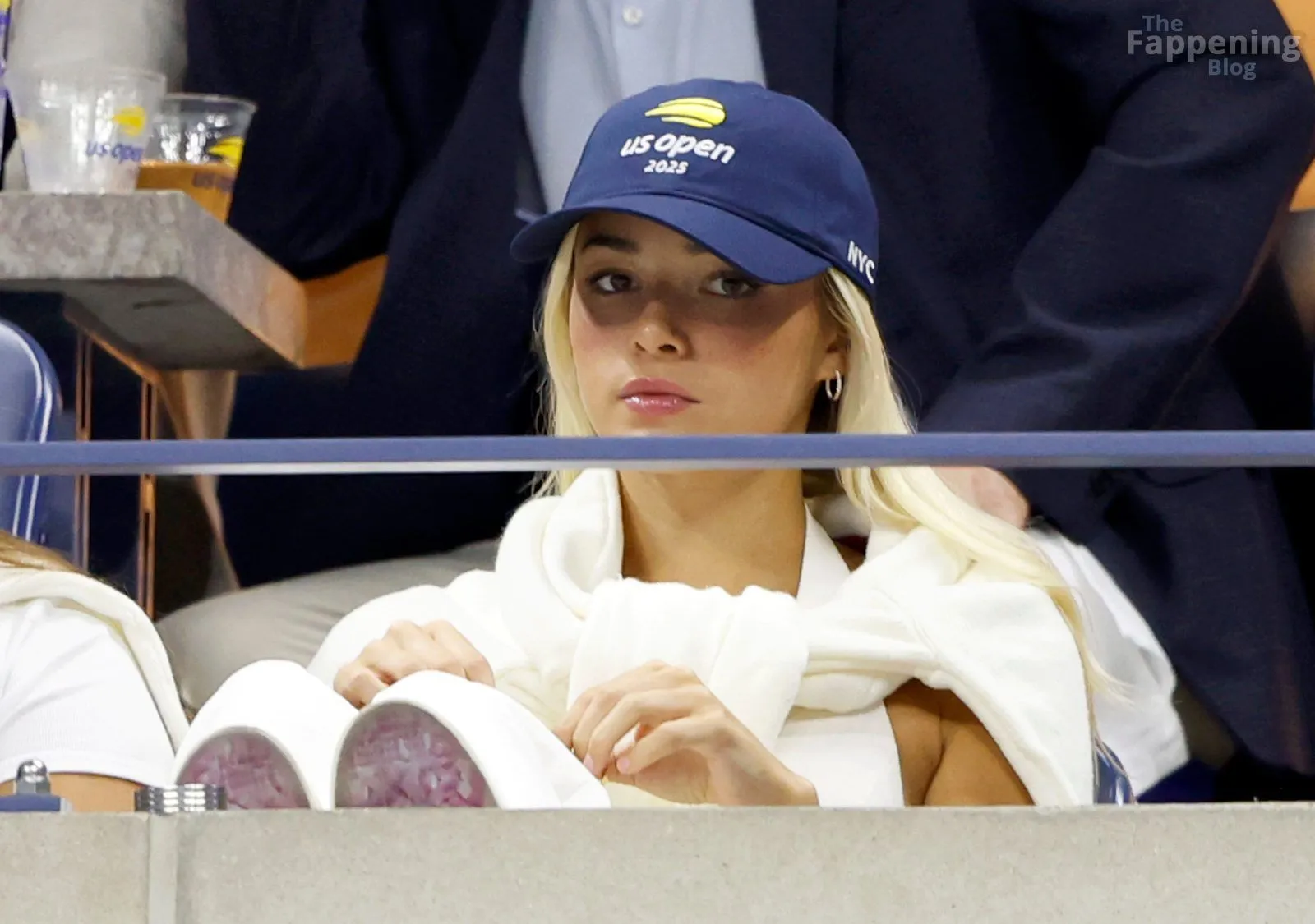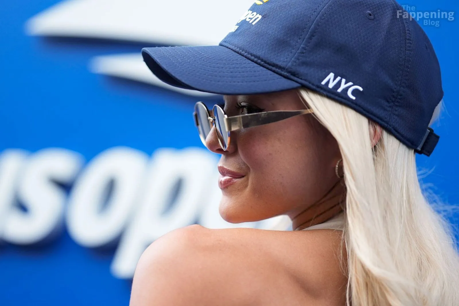 American influencer and former artistic gymnast Olivia Dunne rocked a backless halter and tight pants at the US Open.
