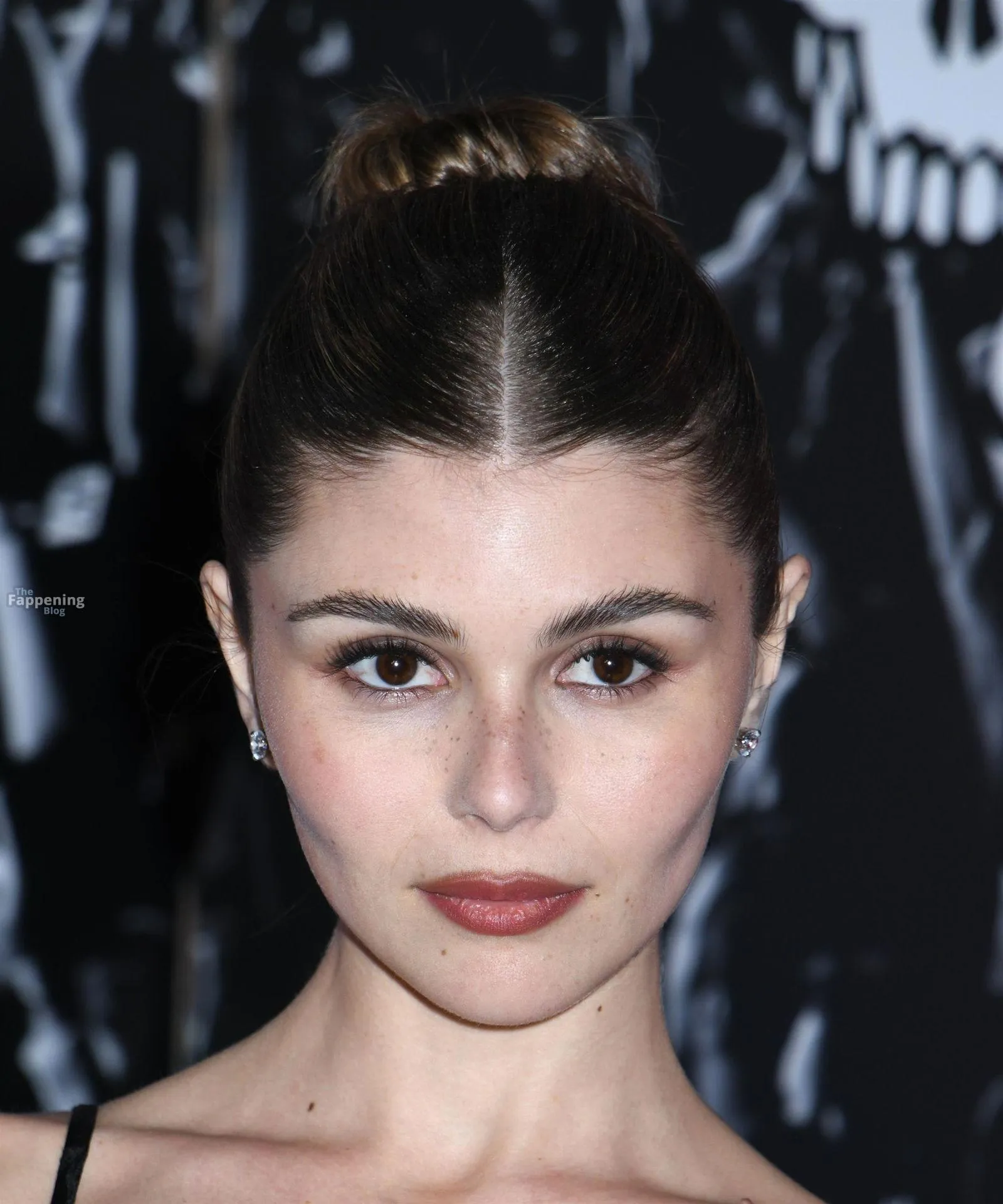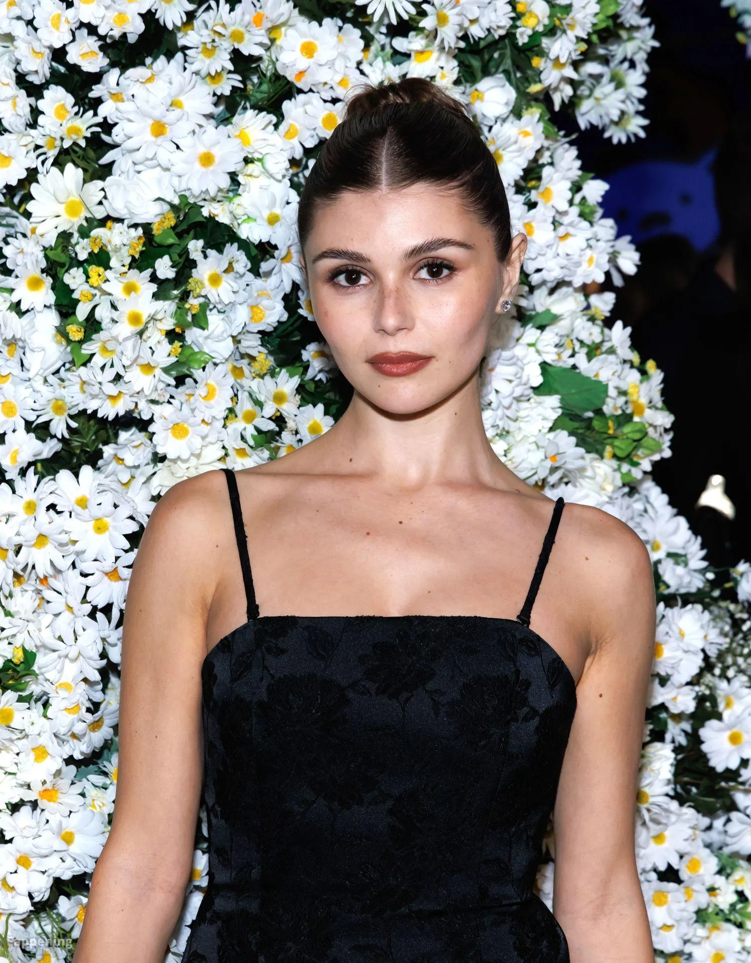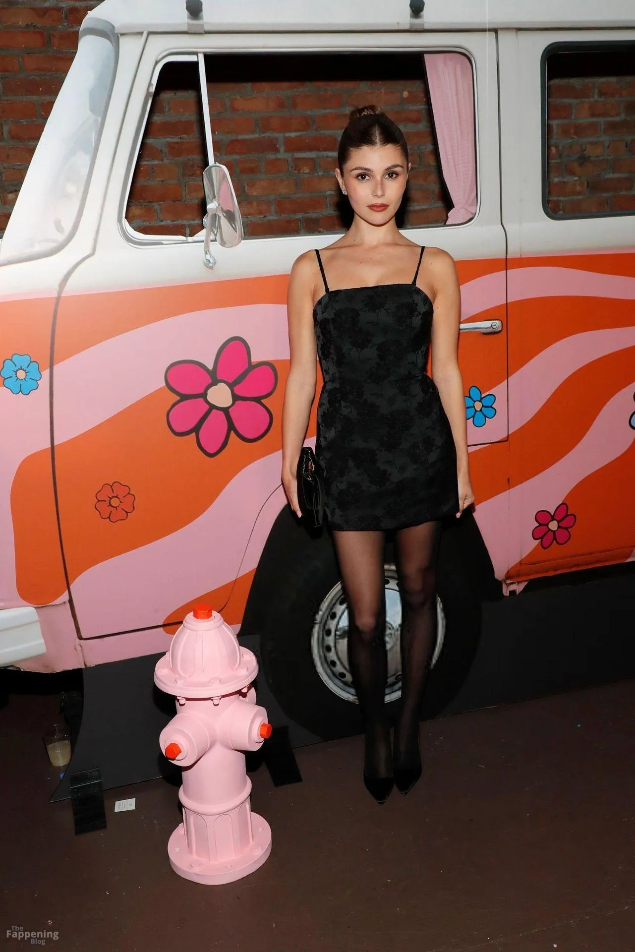 Olivia Jade Giannulli shows off her sexy legs in a black mini dress and sheer tights at the Alice + Olivia x Grateful Dead launch party in NYC.