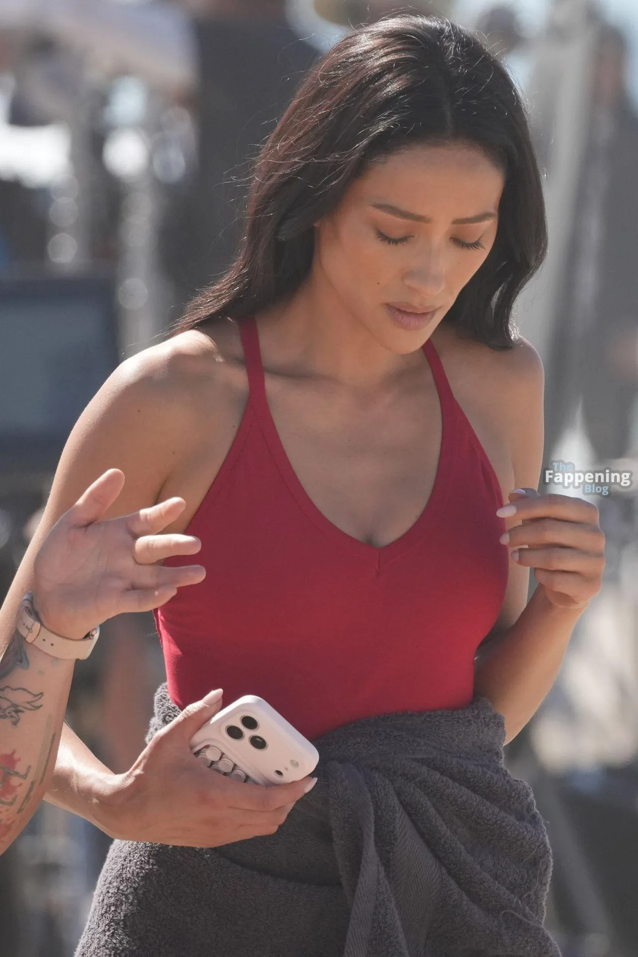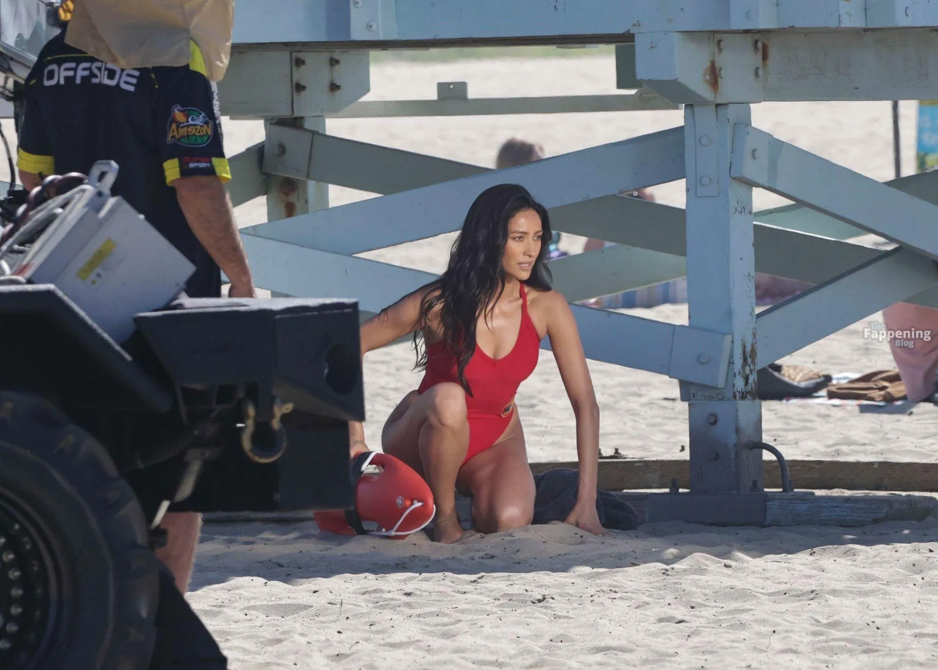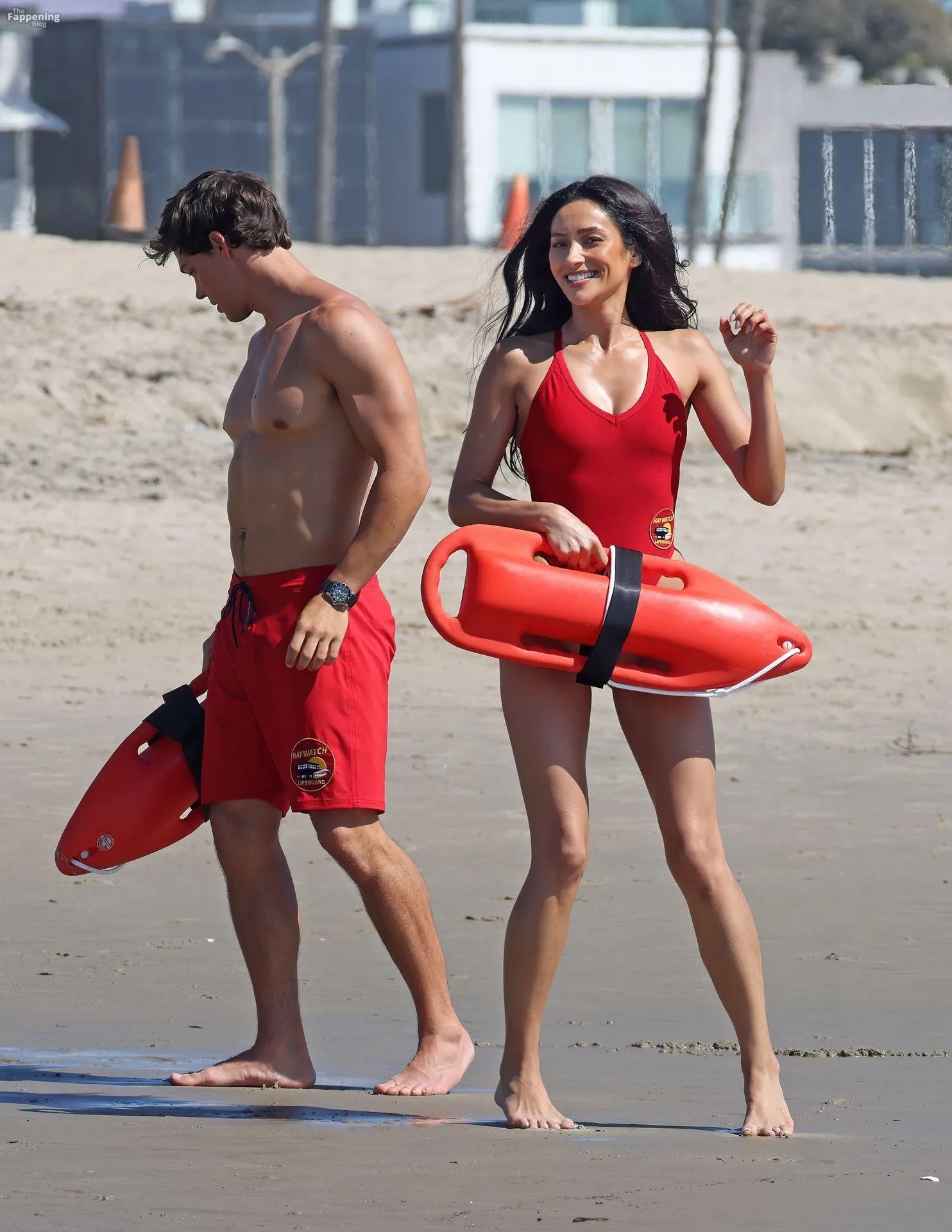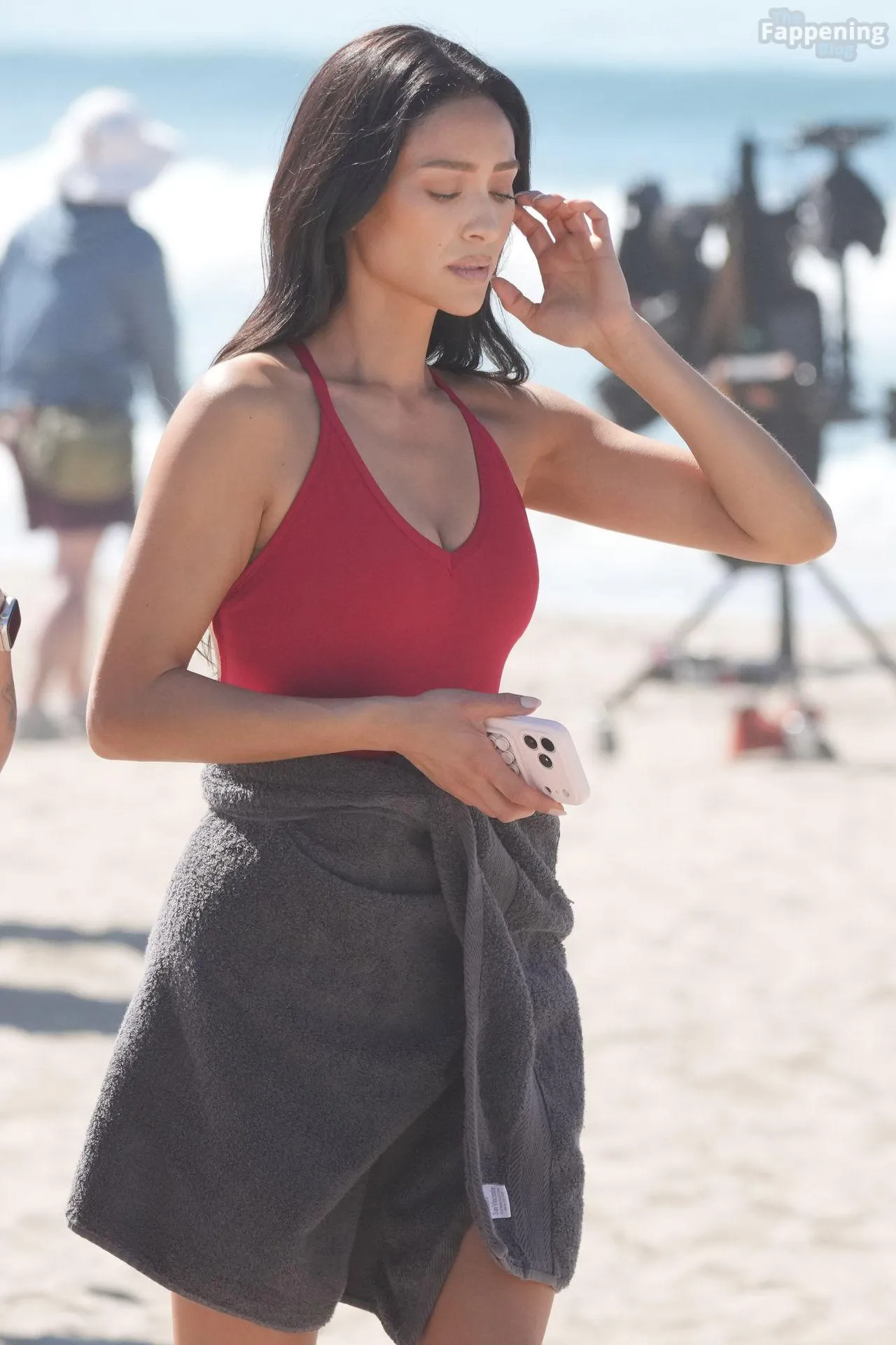 Shay Mitchell displayed her sexy beach-ready body while filming scenes this morning for Fox’s “Baywatch” Reboot.