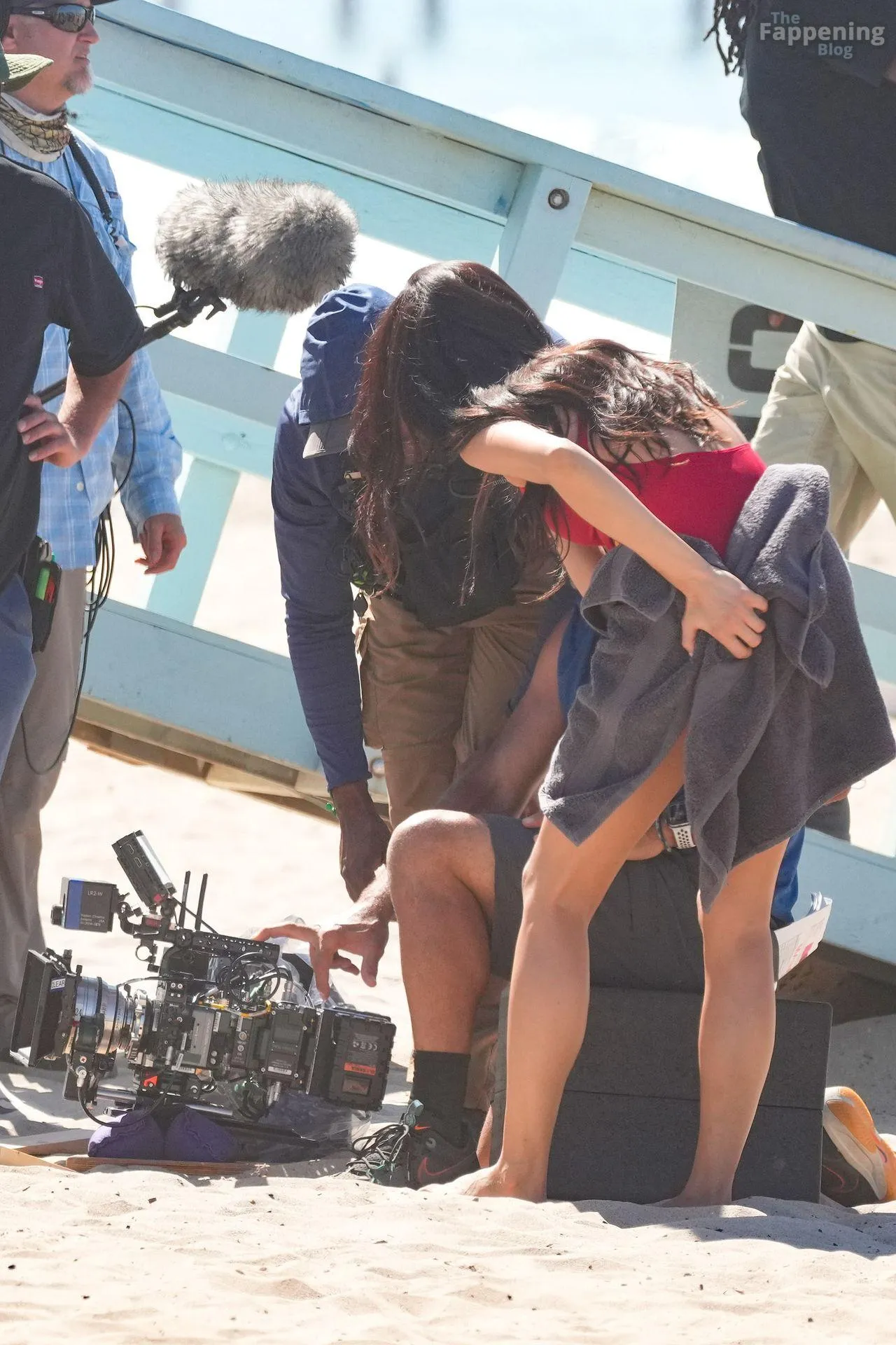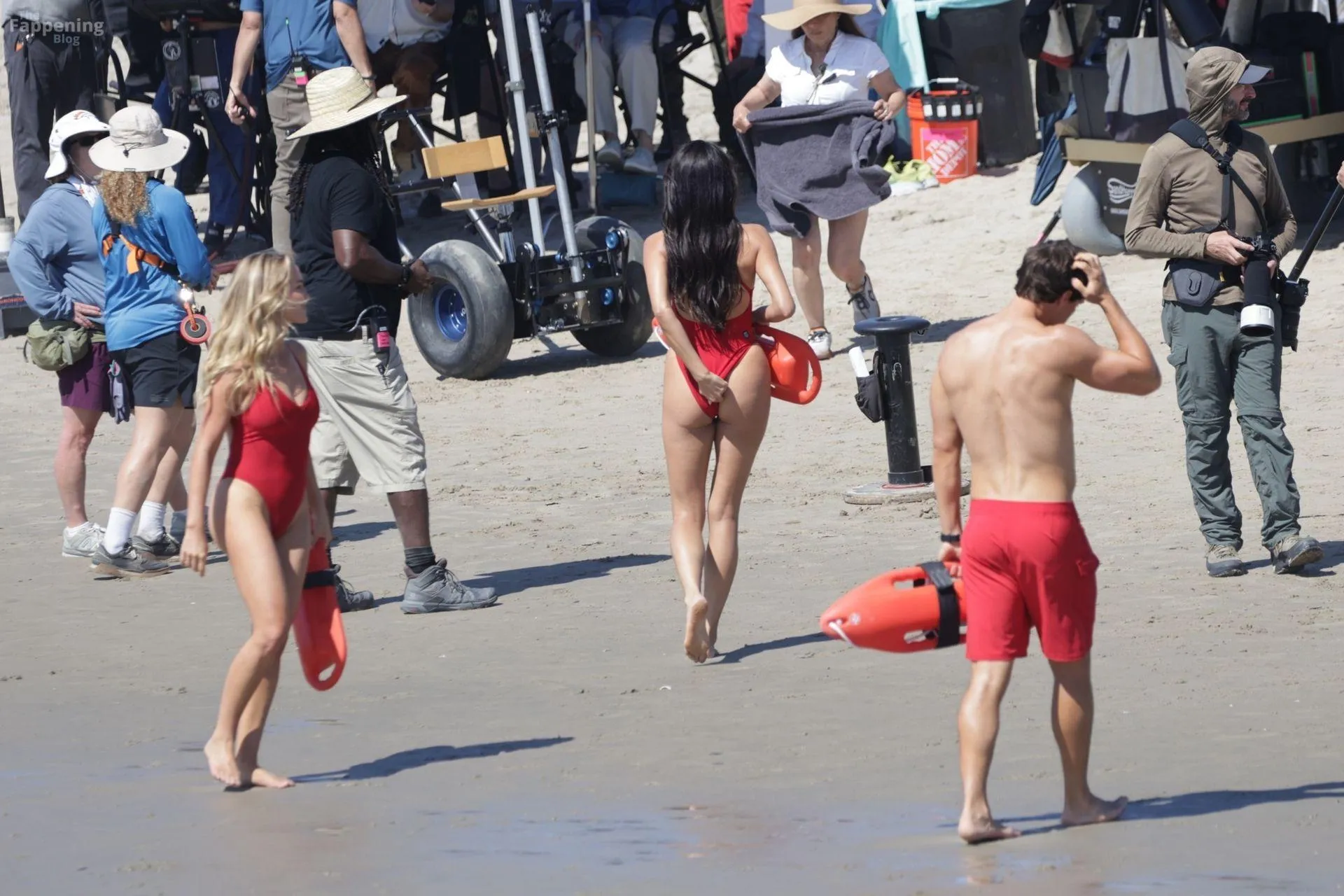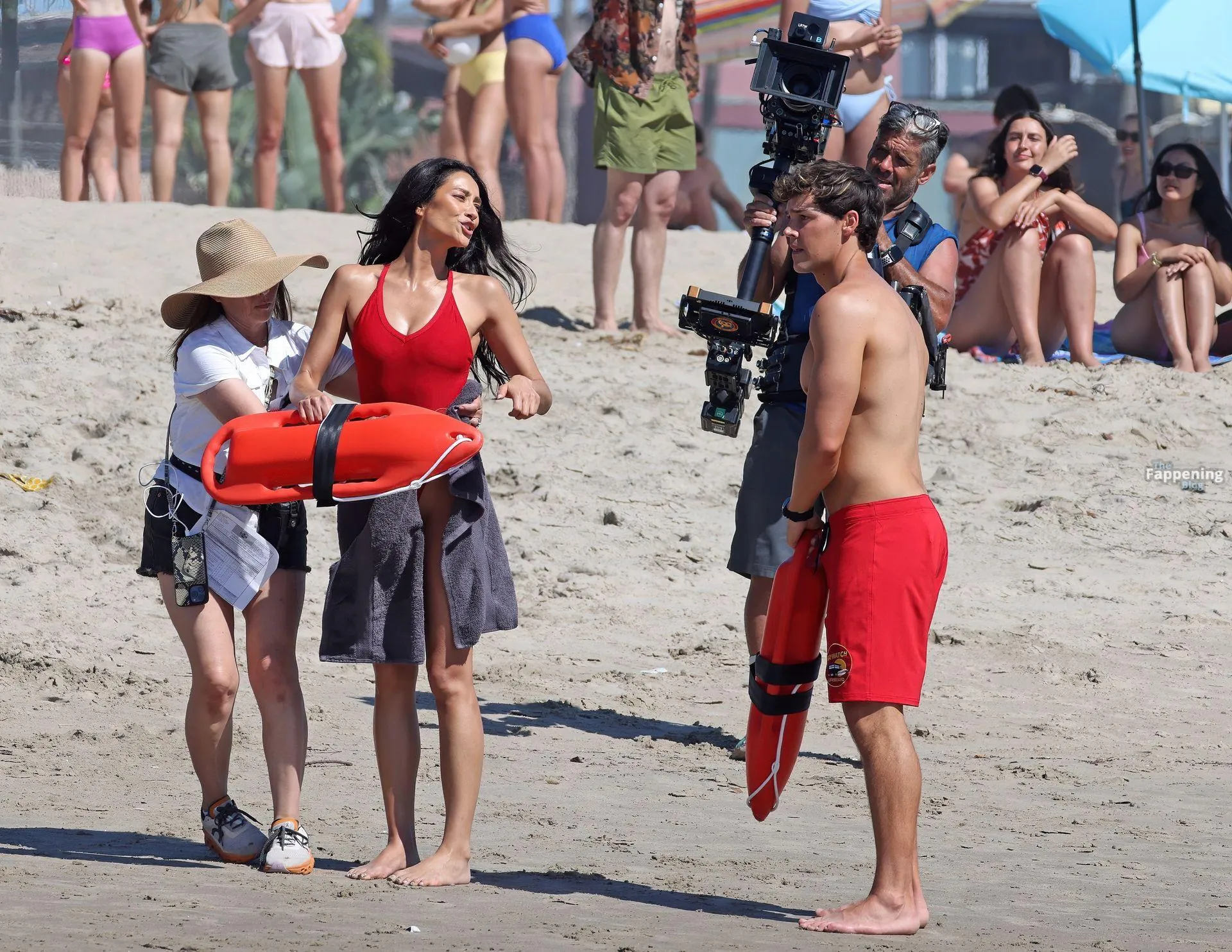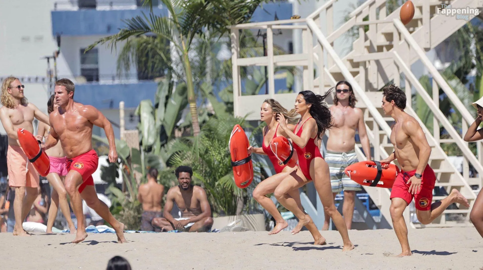 Shay Mitchell displayed her sexy beach-ready body while filming scenes this morning for Fox’s “Baywatch” Reboot.