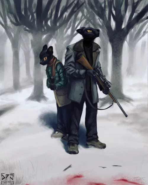 "Stay close. Looks like we're not the only ones hunting in these woods."