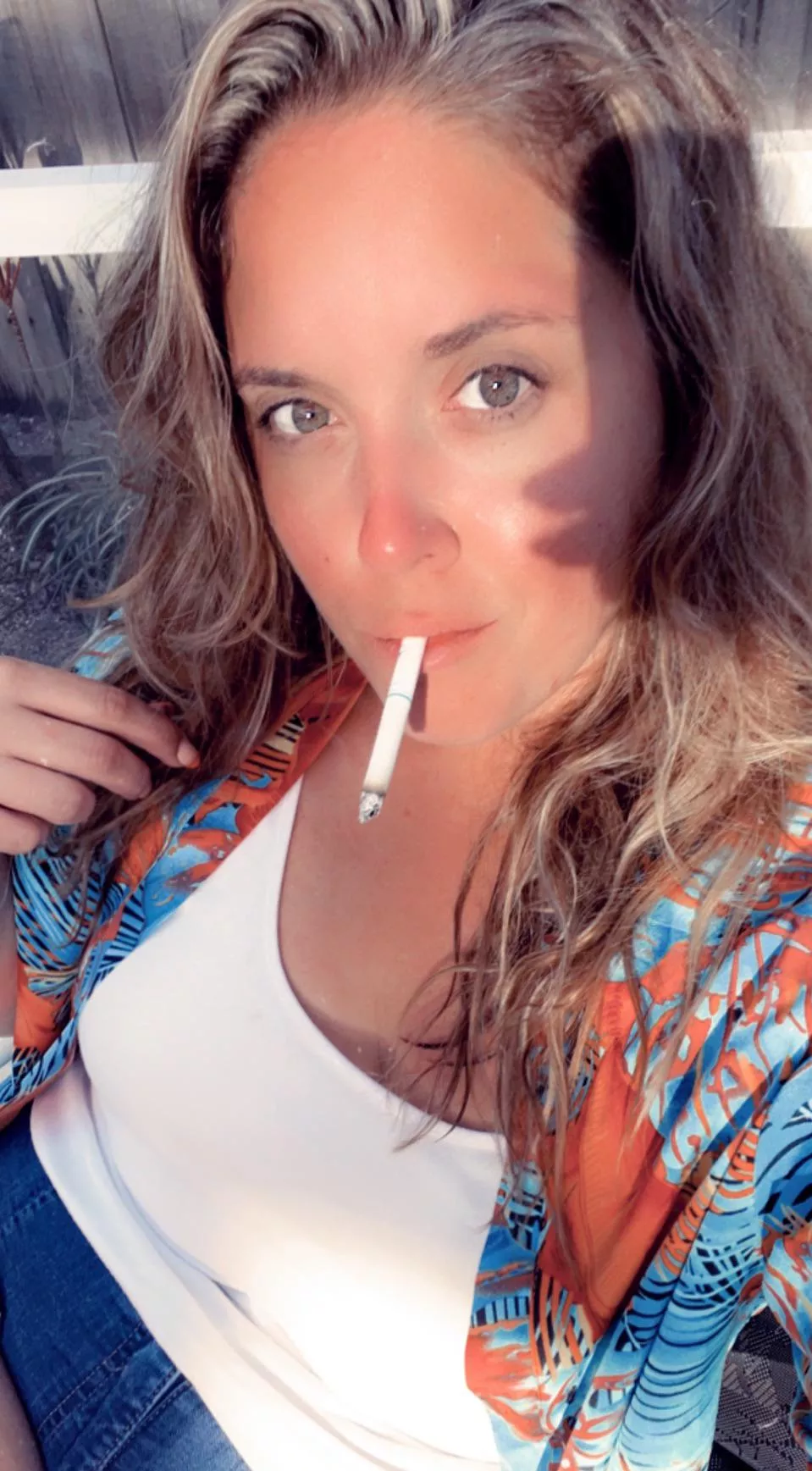 "Risking it all for a puff: the dangerous game of dangling a cigarette." nudes