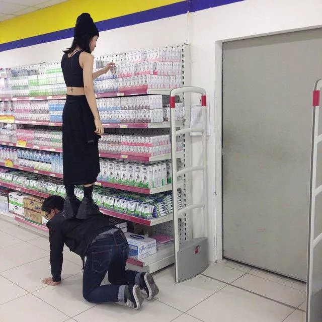 "Attention all shoppers: public humiliation in aisle 3". It's embarrassing that now we can't even go to the store without female supervision, but at least pigs can still be useful when she needs milk from the top shelf. I just wish I could do it with nudes