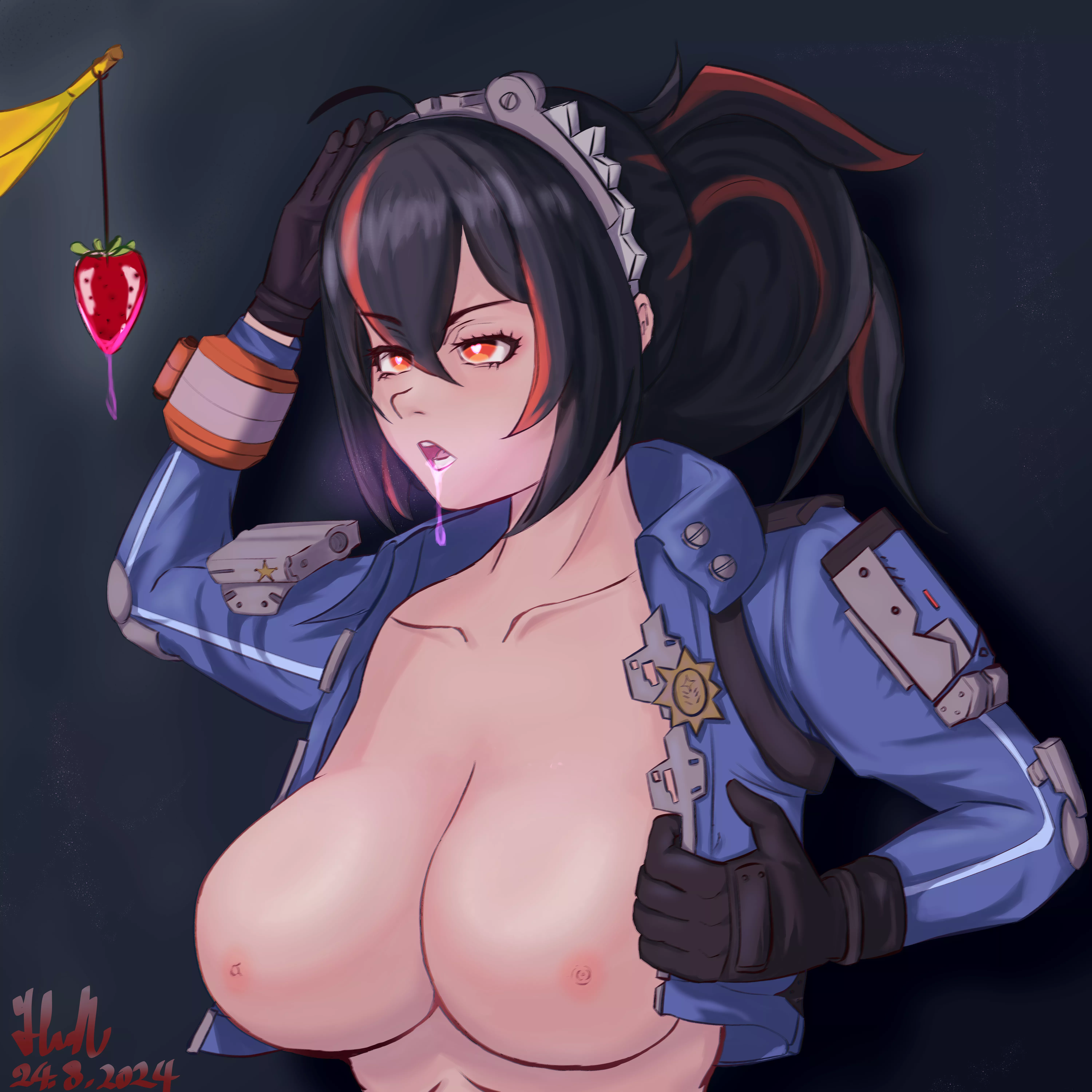 "it's illegal to have such a delicious strawberry around here! so you gotta let me have it!" (Zhu Yuan from ZZZ, drawn by HvN) nudes