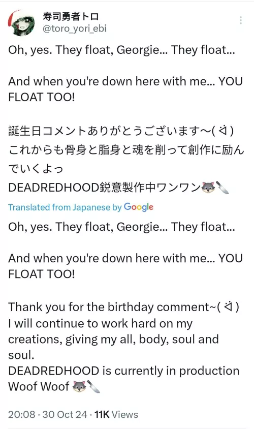 "And when you're down here with me... YOU FLOAT TOO!" ✒️🔥🔥🔥
