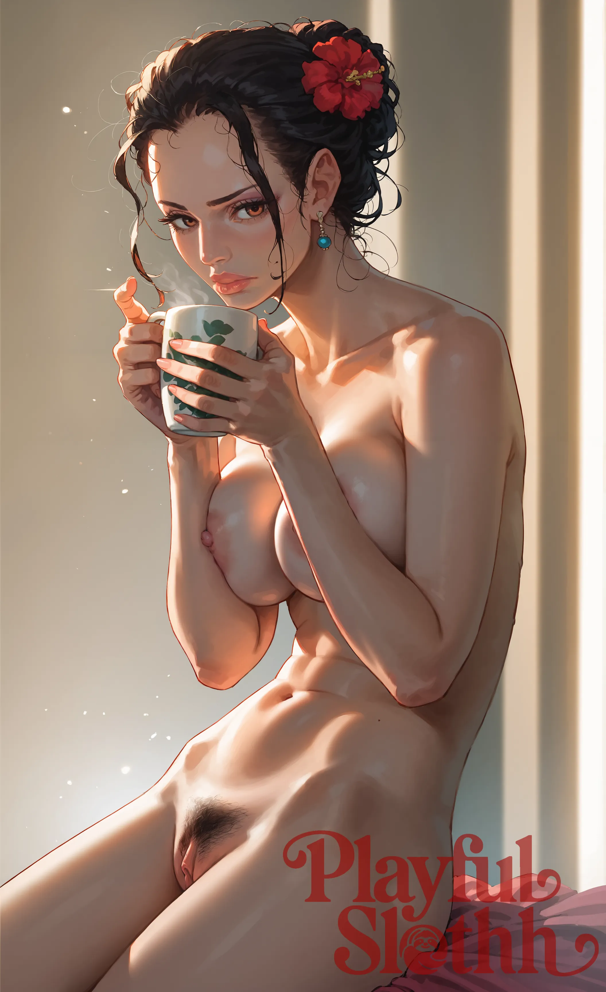 "A good cup of coffee is like a secret... rich, bold, and best enjoyed in silence." - Viola - Playful Slothh nudes