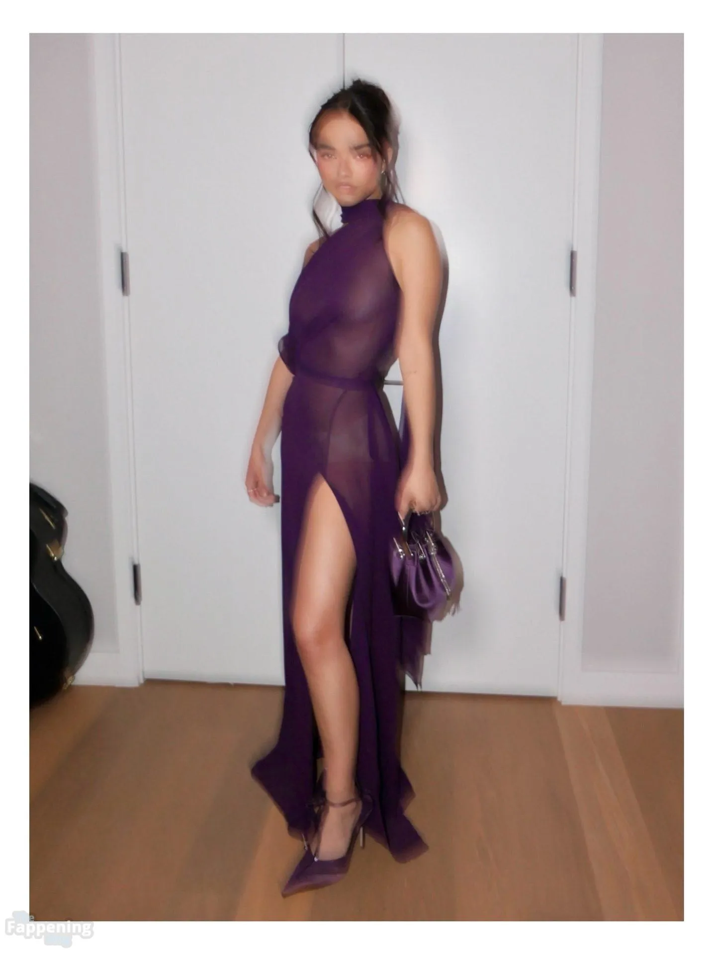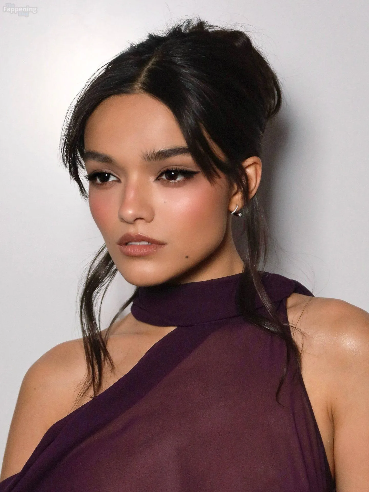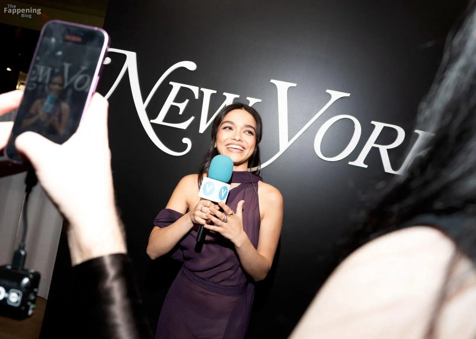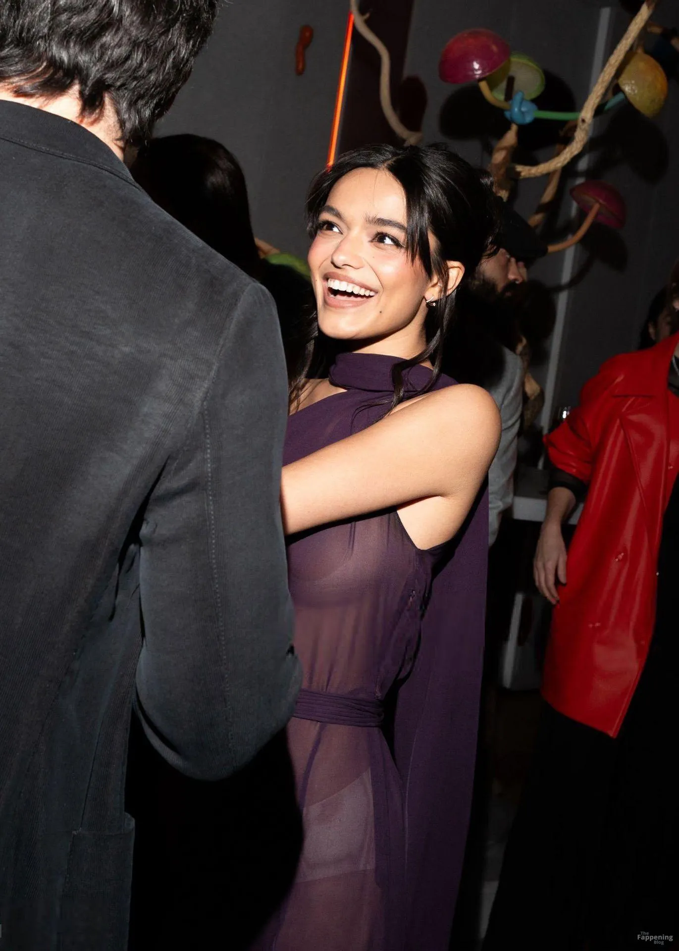 Rachel Zegler is seen at the NYMag Culturati Cocktail red carpet. She rolled up braless in a sheer purple gown that showin’ her sexy tits with pasties.