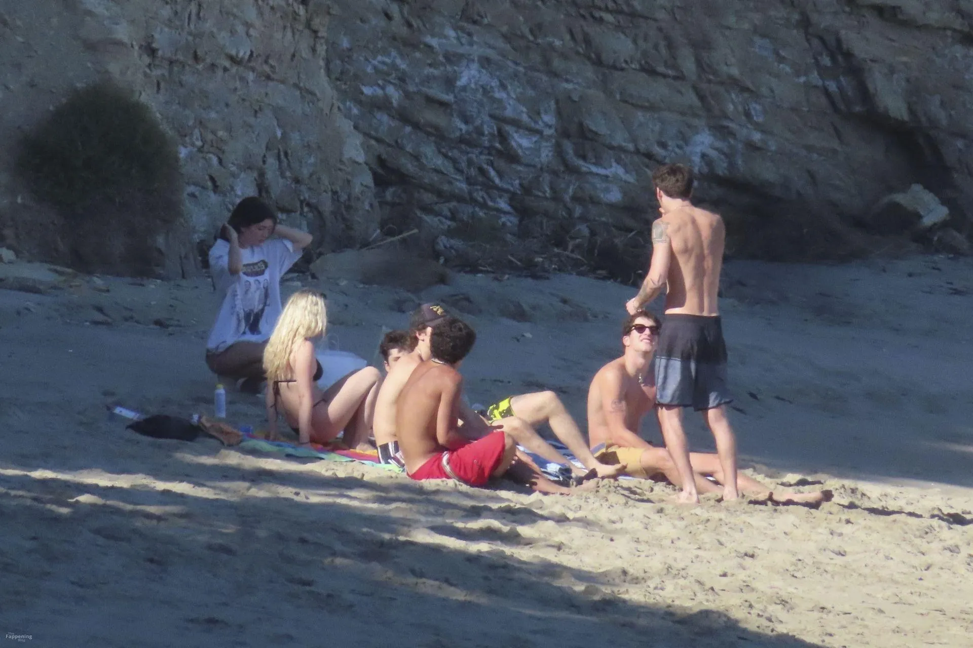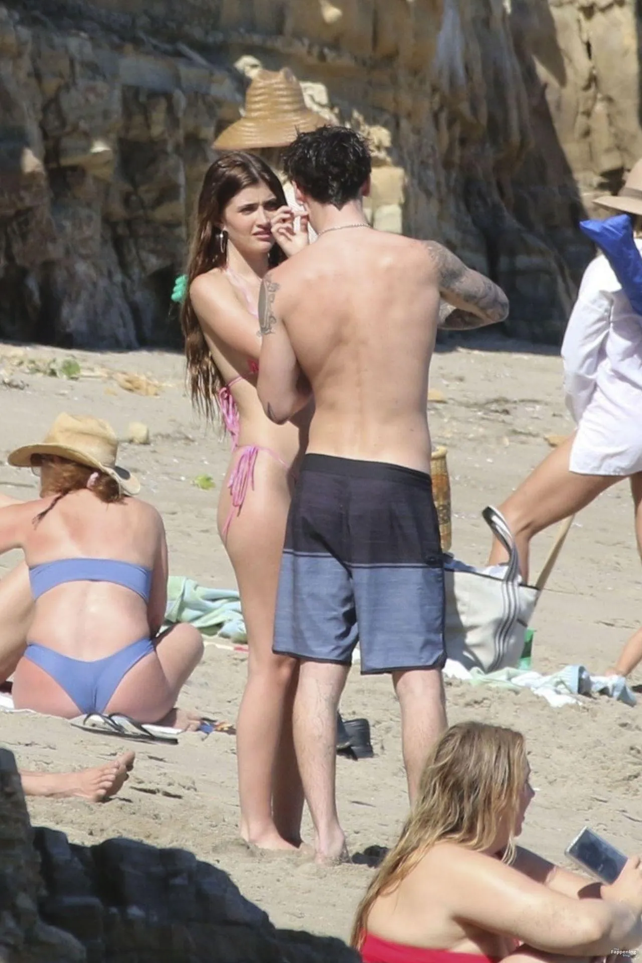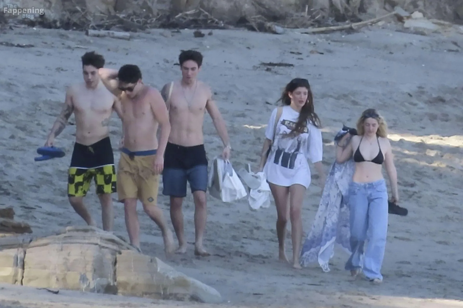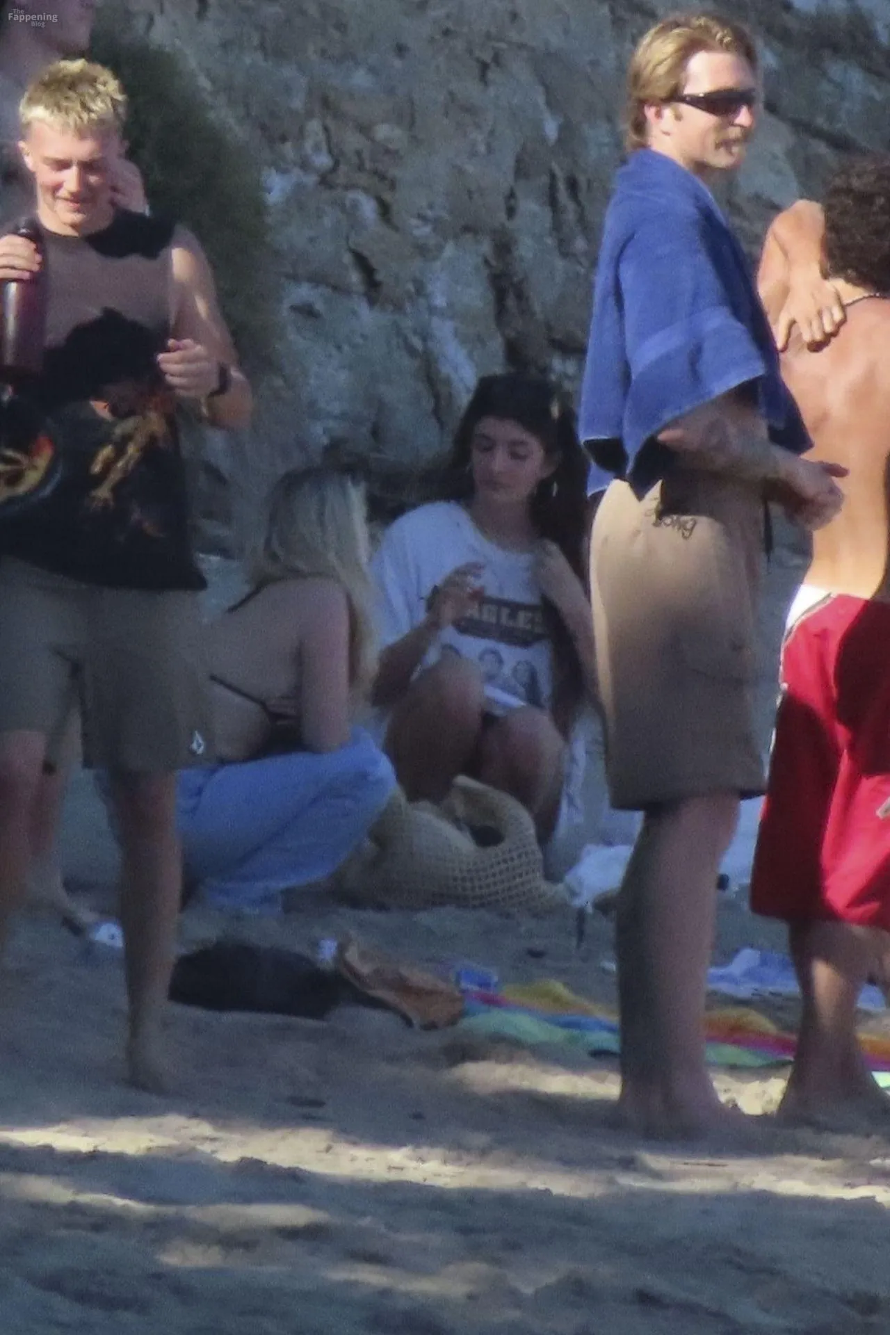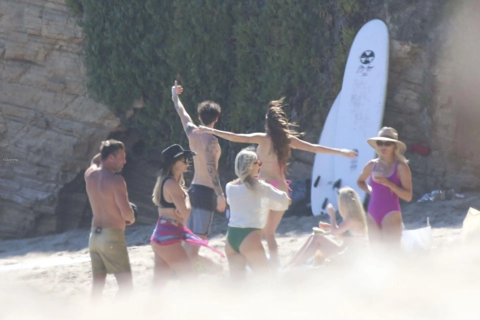Model Sami Sheen is seen looking stunning in a pink thong bikini while picking up shells and enjoying a sunny day on the beach with believed to be boyfriend and friends in Malibu, California.