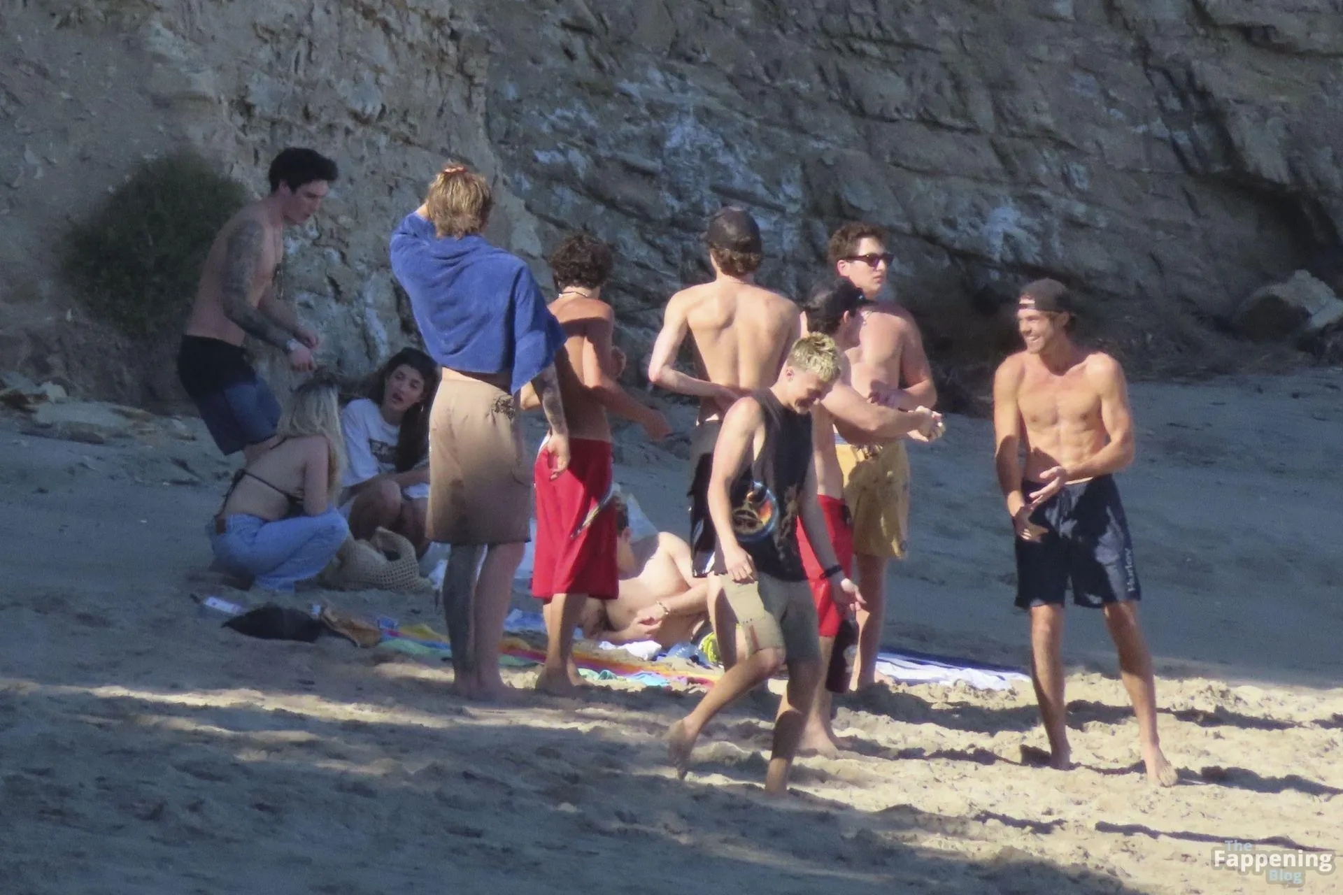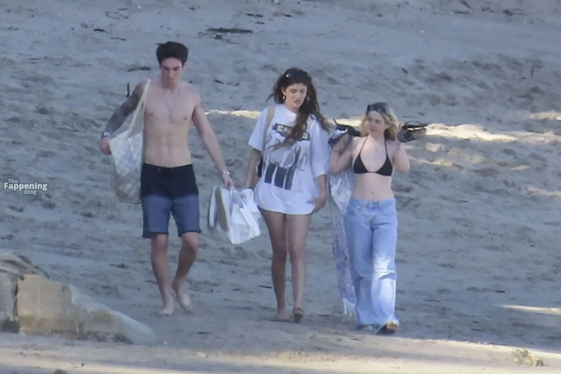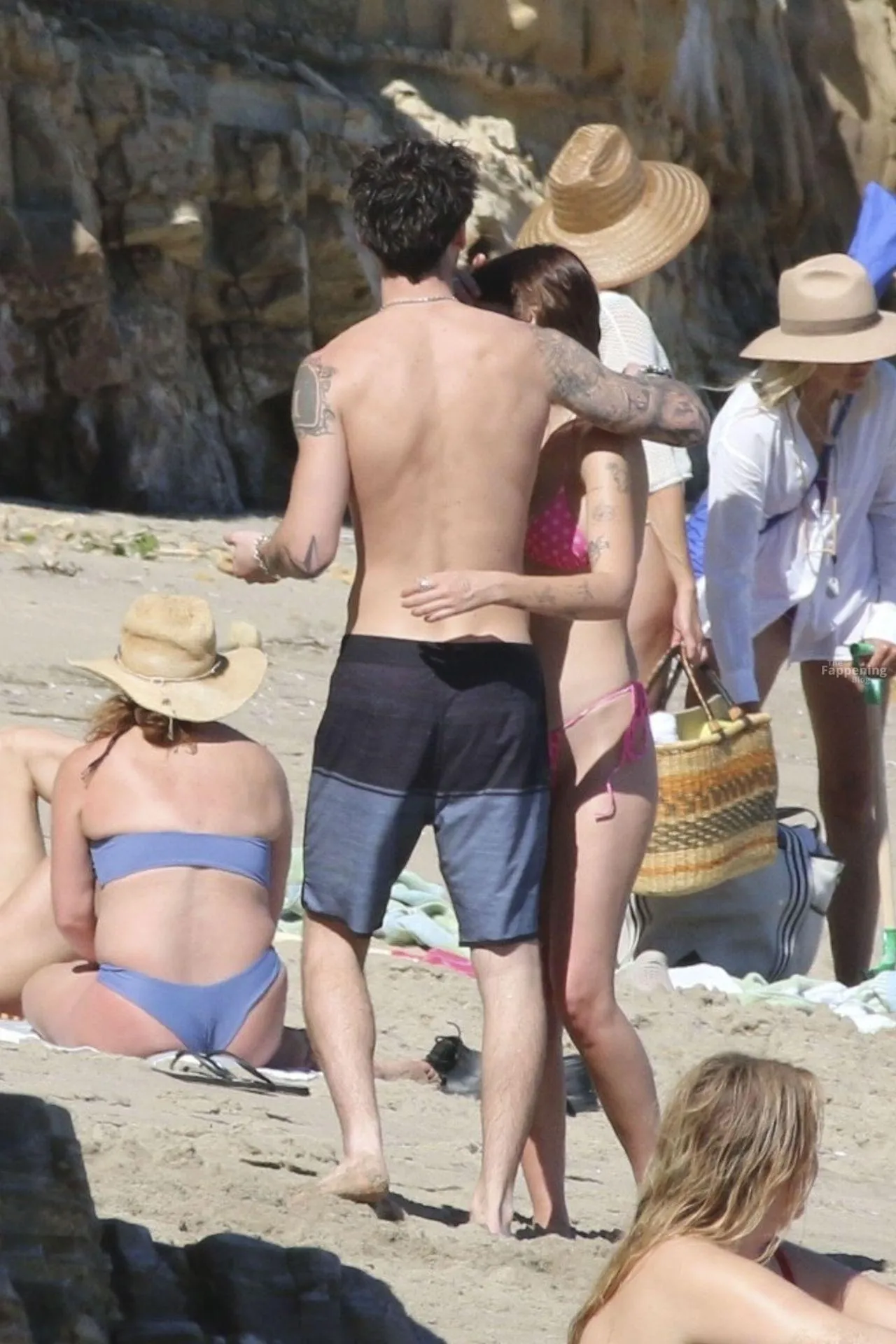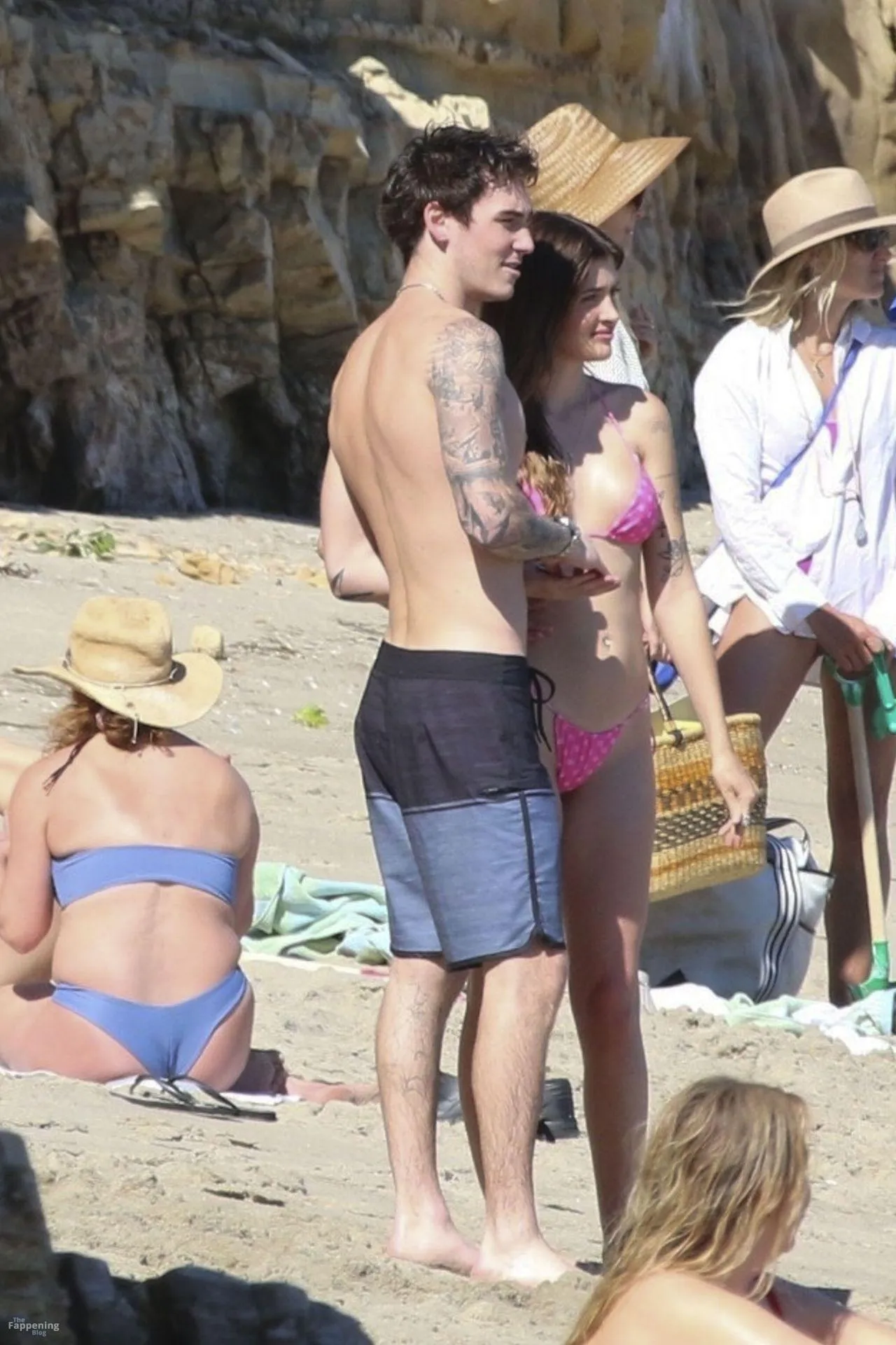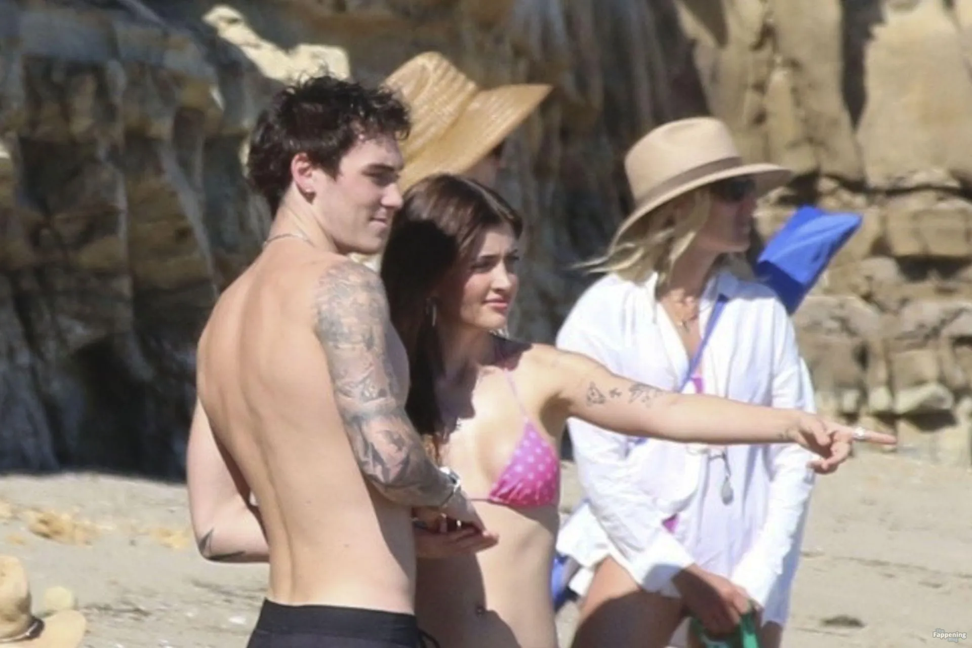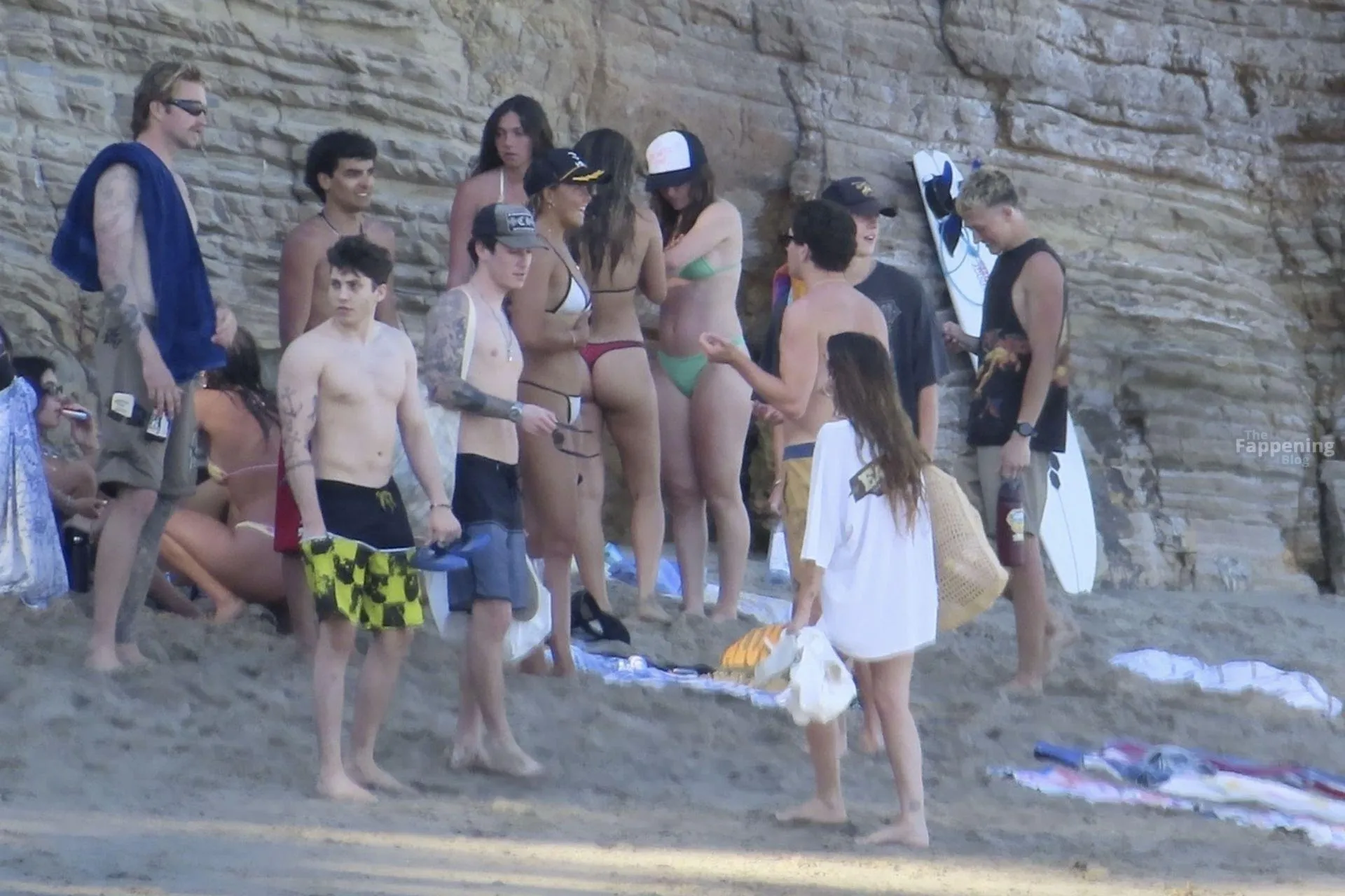 Model Sami Sheen is seen looking stunning in a pink thong bikini while picking up shells and enjoying a sunny day on the beach with believed to be boyfriend and friends in Malibu, California.