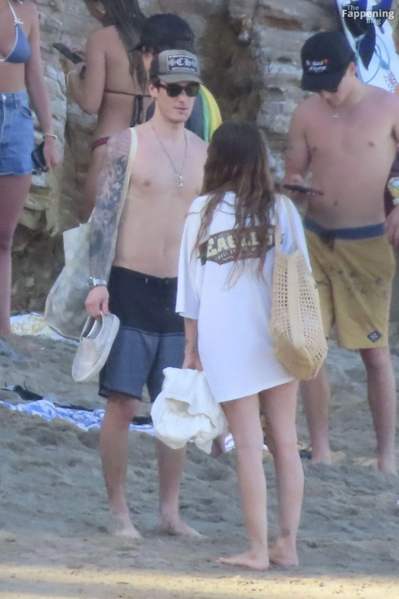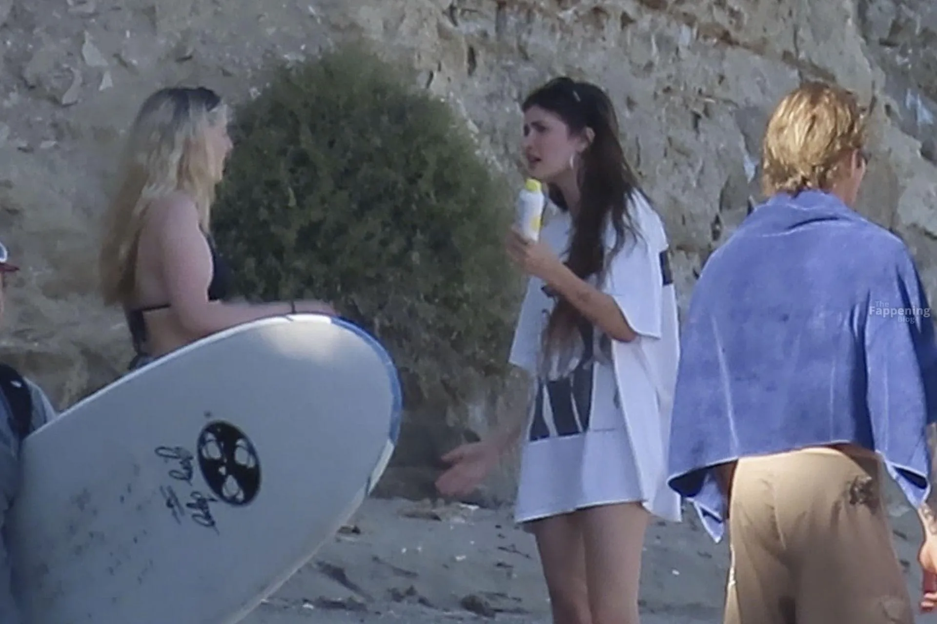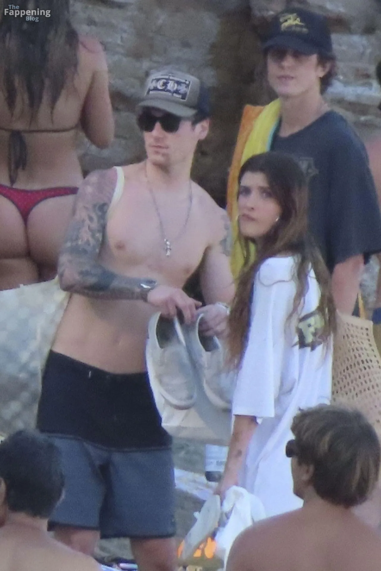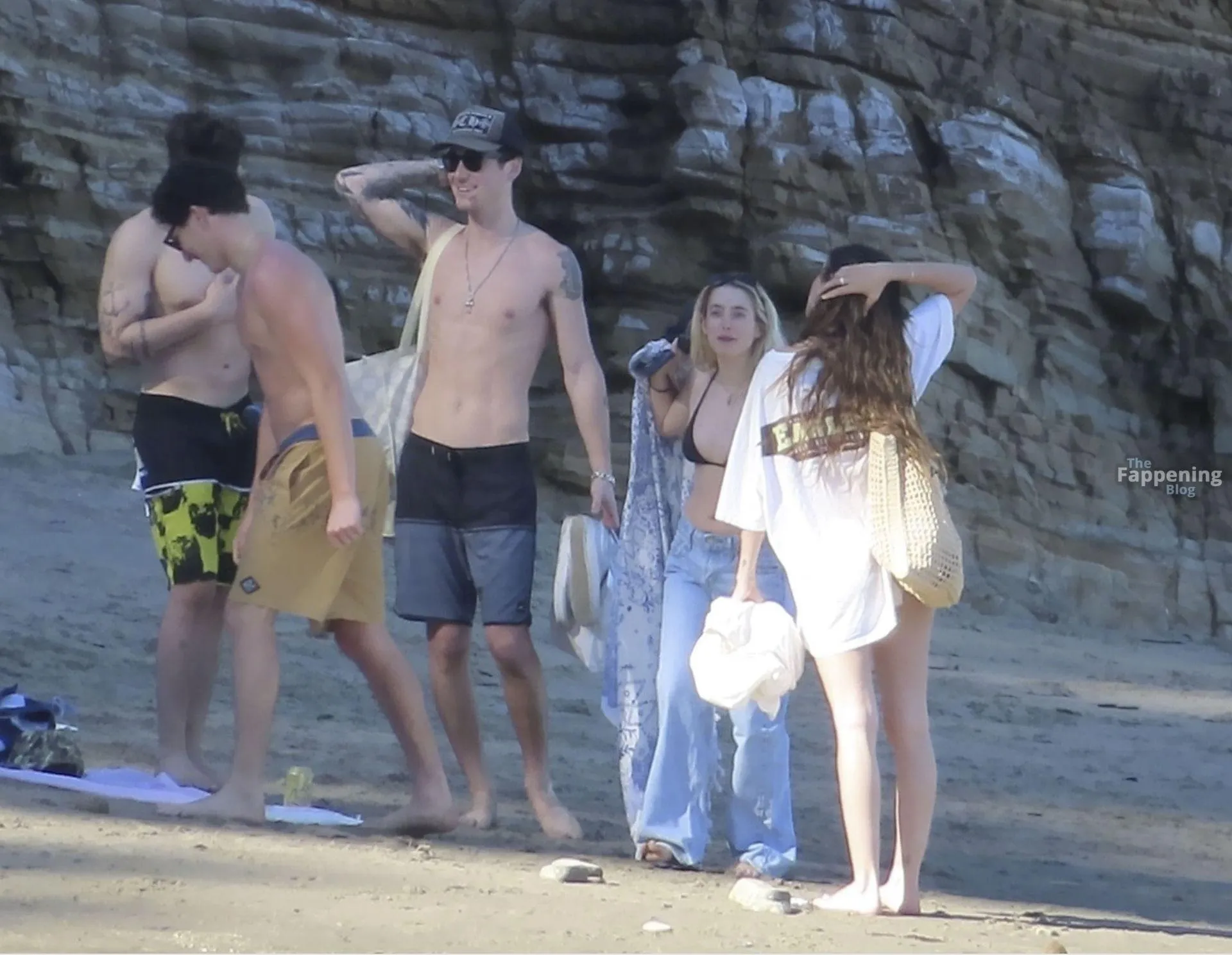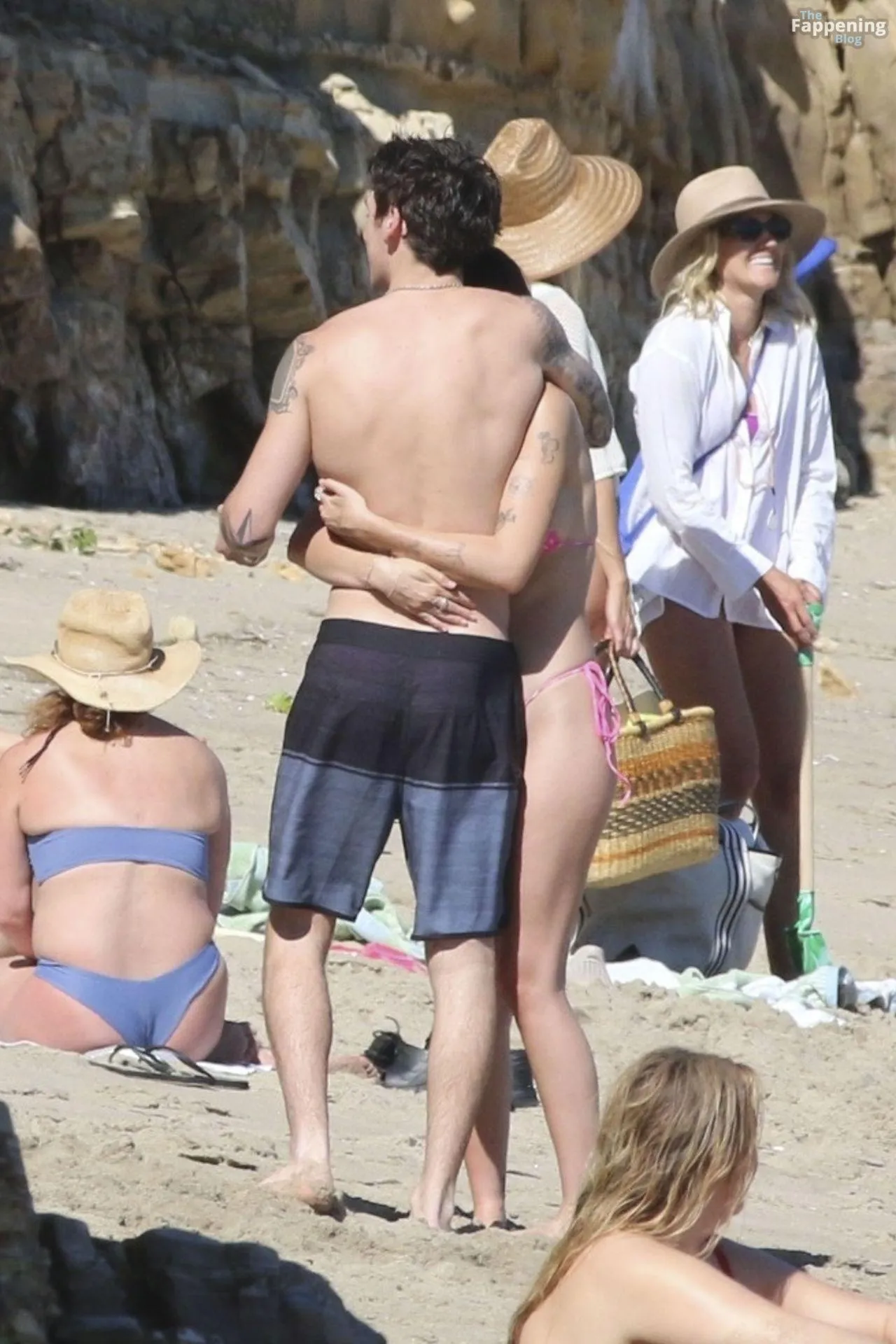 Model Sami Sheen is seen looking stunning in a pink thong bikini while picking up shells and enjoying a sunny day on the beach with believed to be boyfriend and friends in Malibu, California.