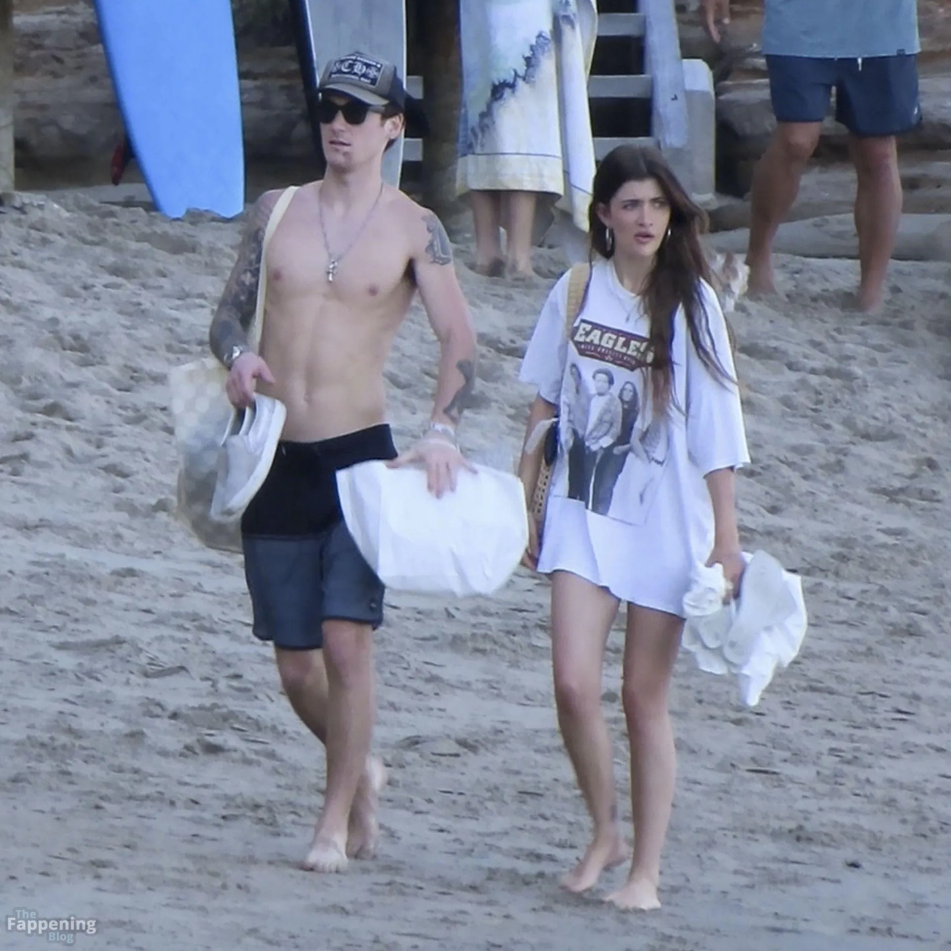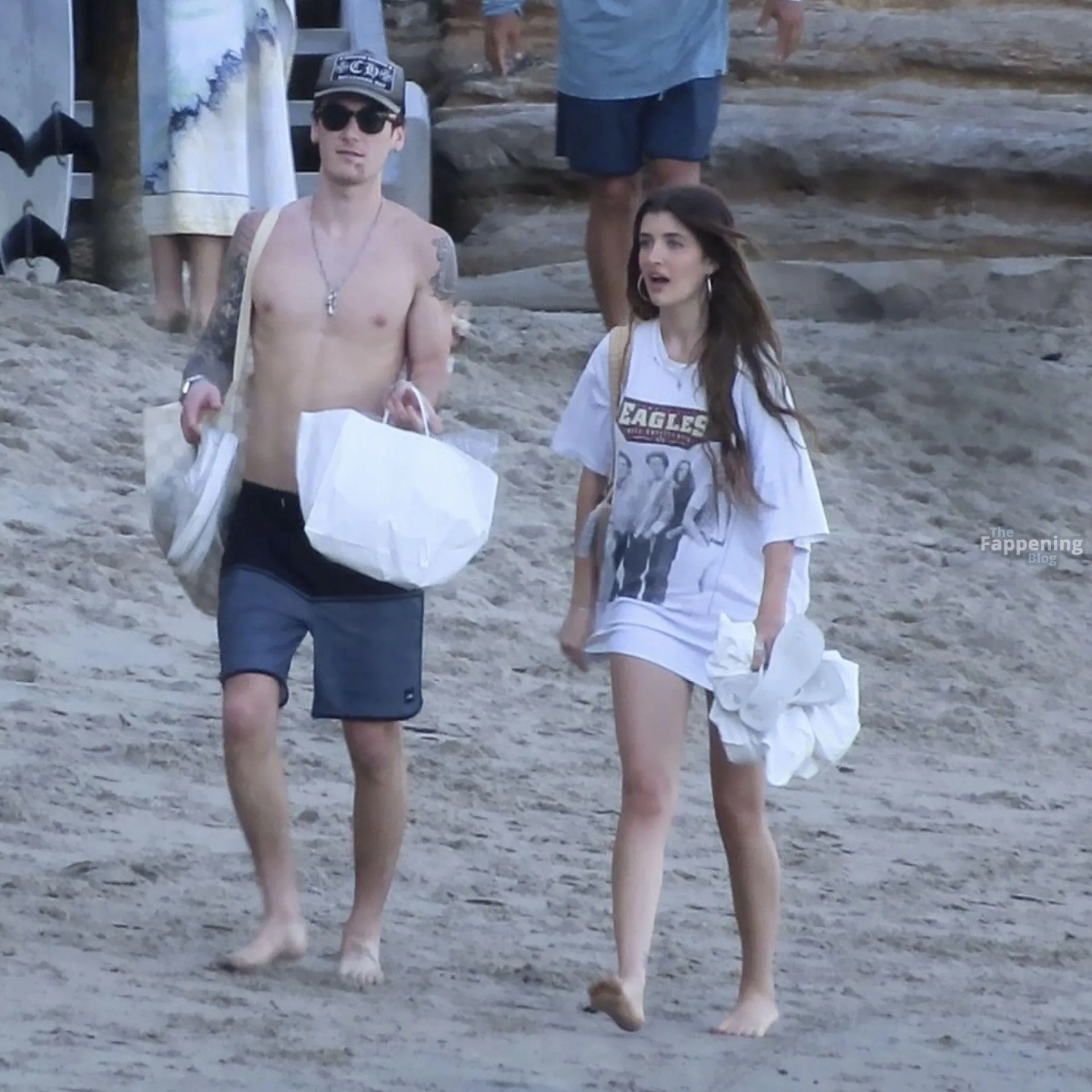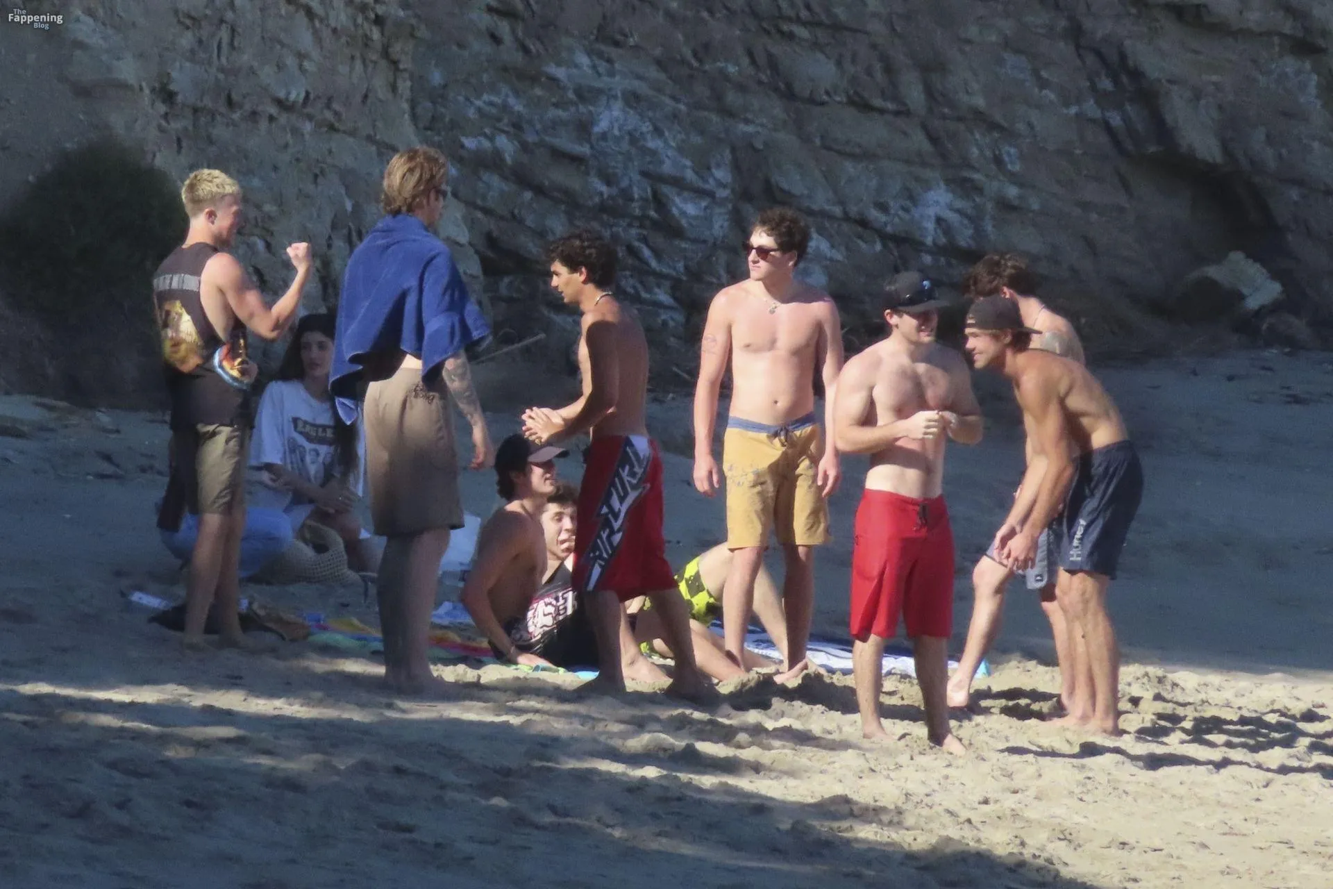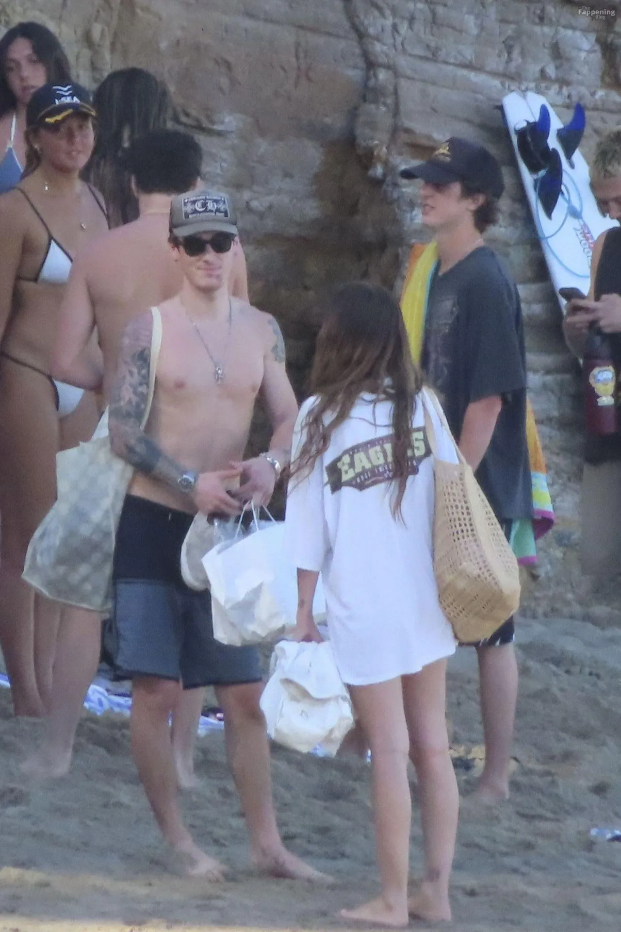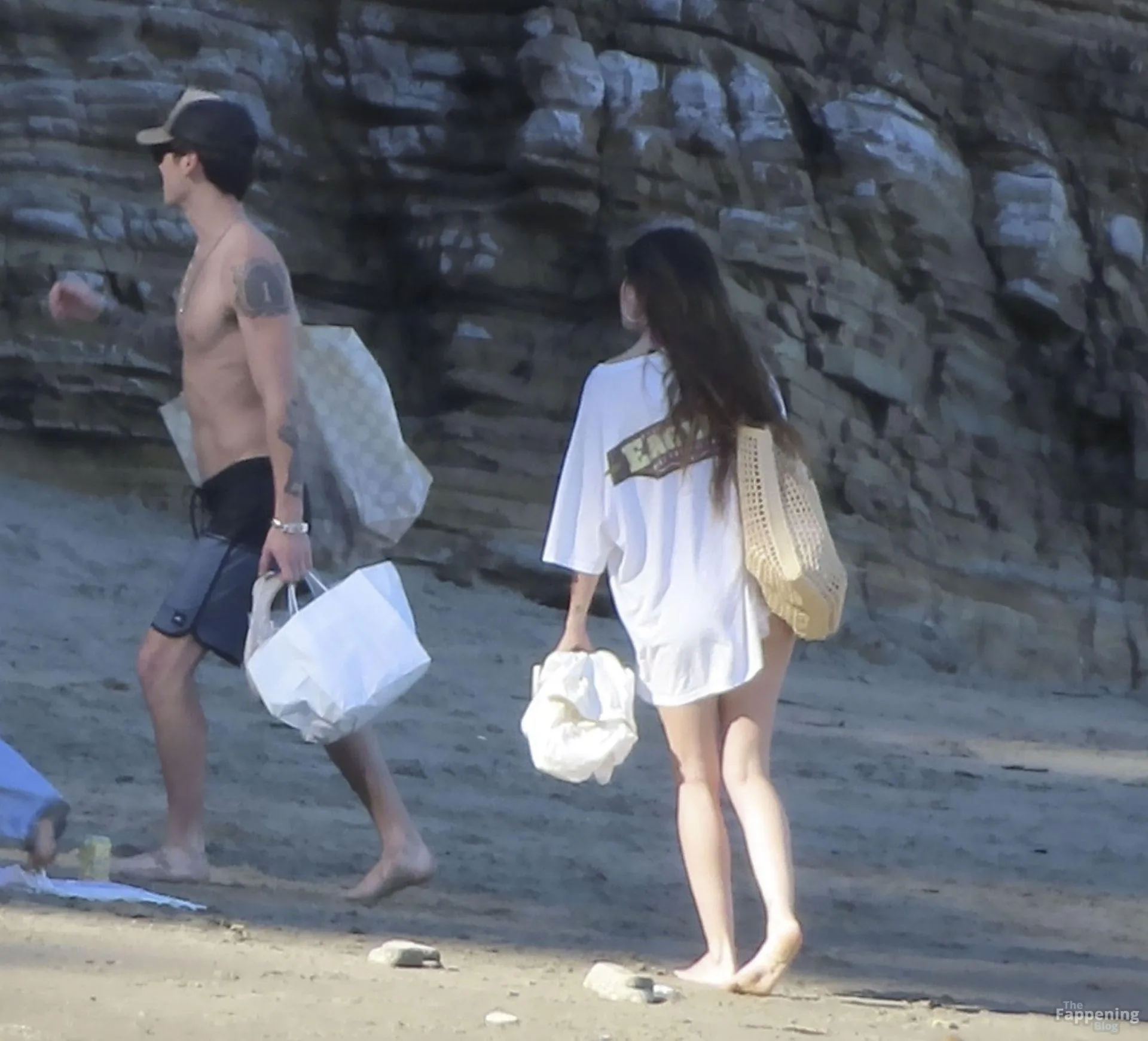 Model Sami Sheen is seen looking stunning in a pink thong bikini while picking up shells and enjoying a sunny day on the beach with believed to be boyfriend and friends in Malibu, California.