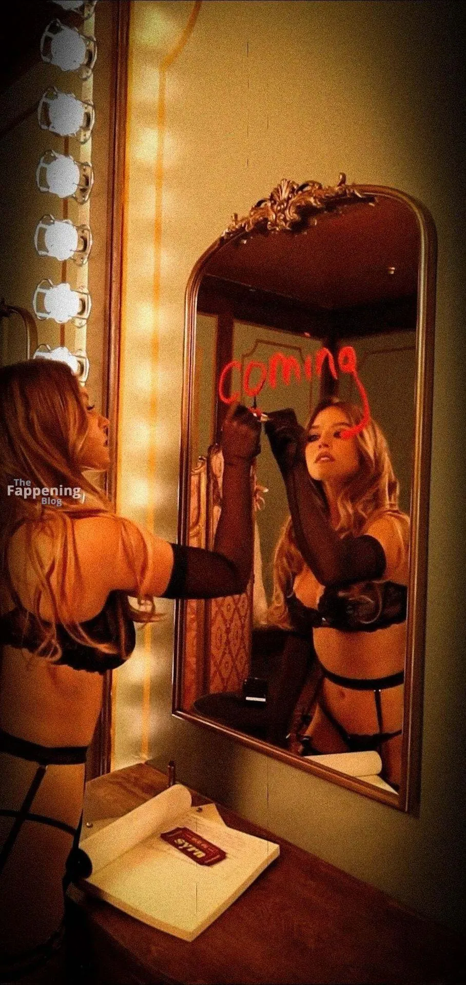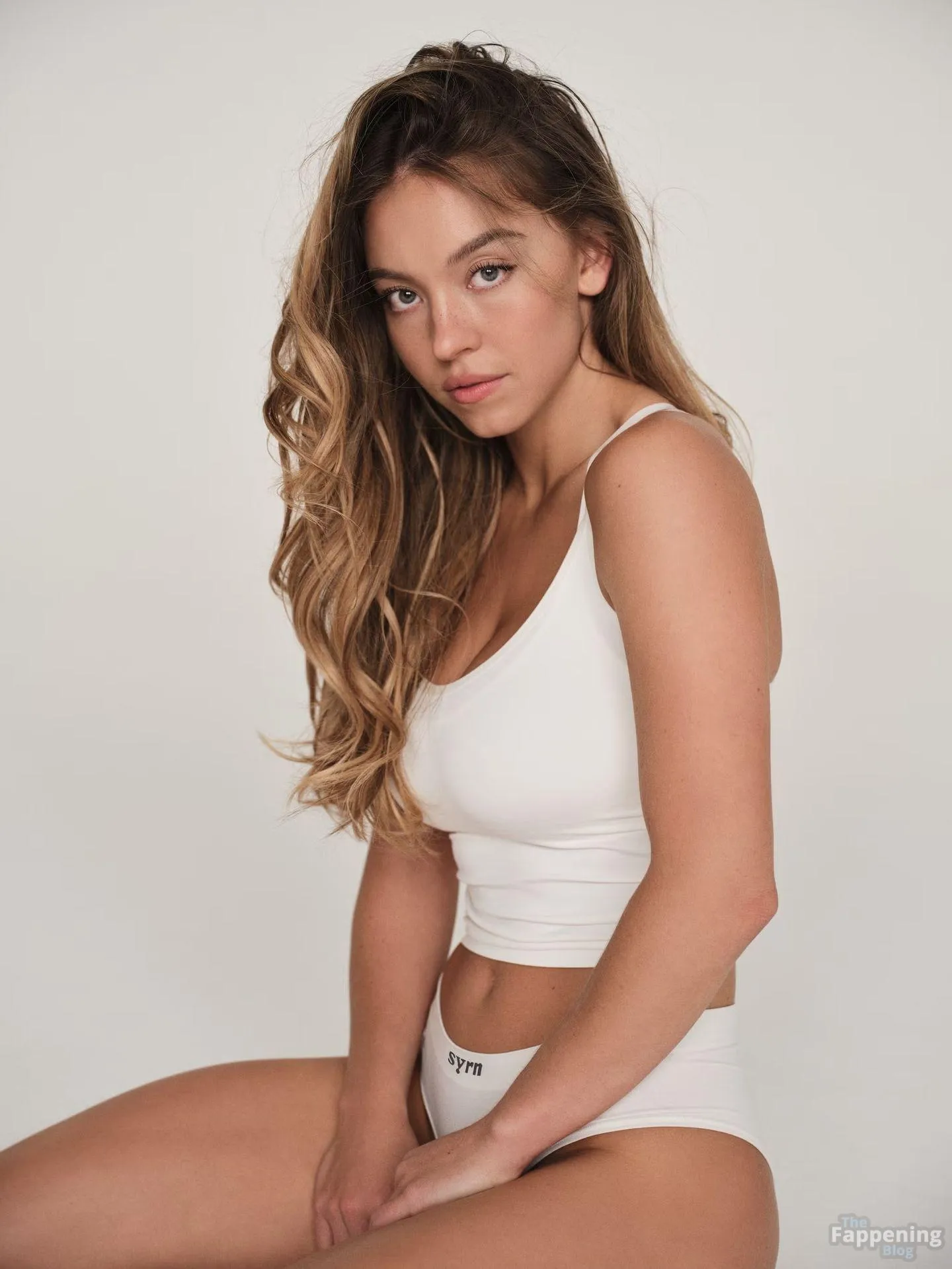 Sydney Sweeney presents her SYRN lingerie collection. The actress stuns with her big boobs and booty here!