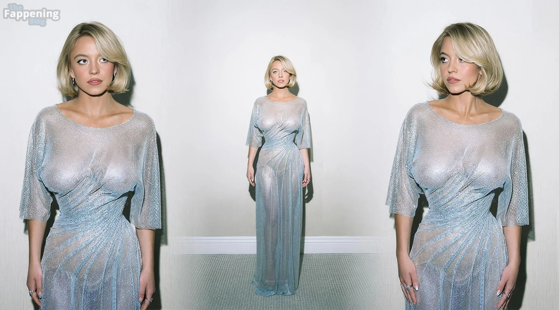 Sydney Sweeney Poses Braless in a See-Through Dress (11 Photos)
