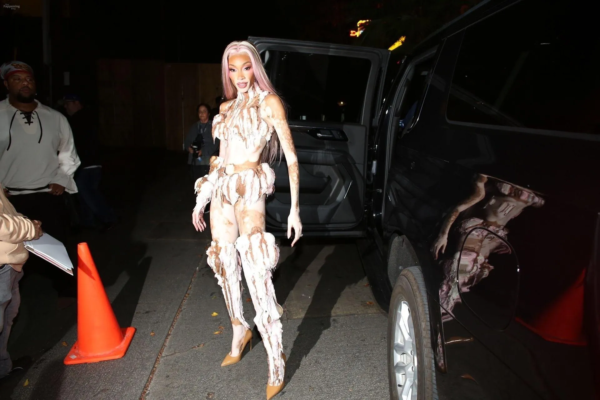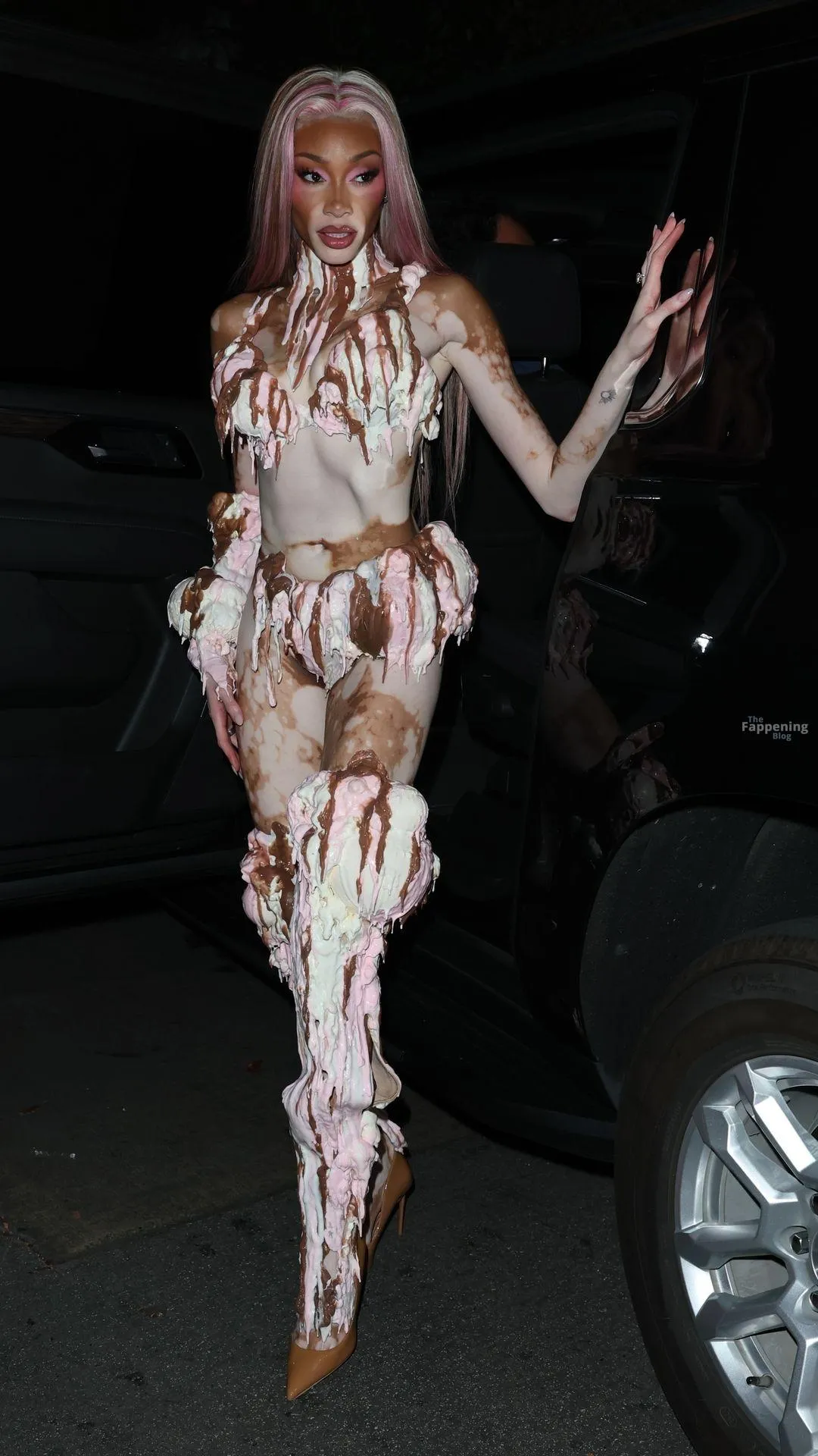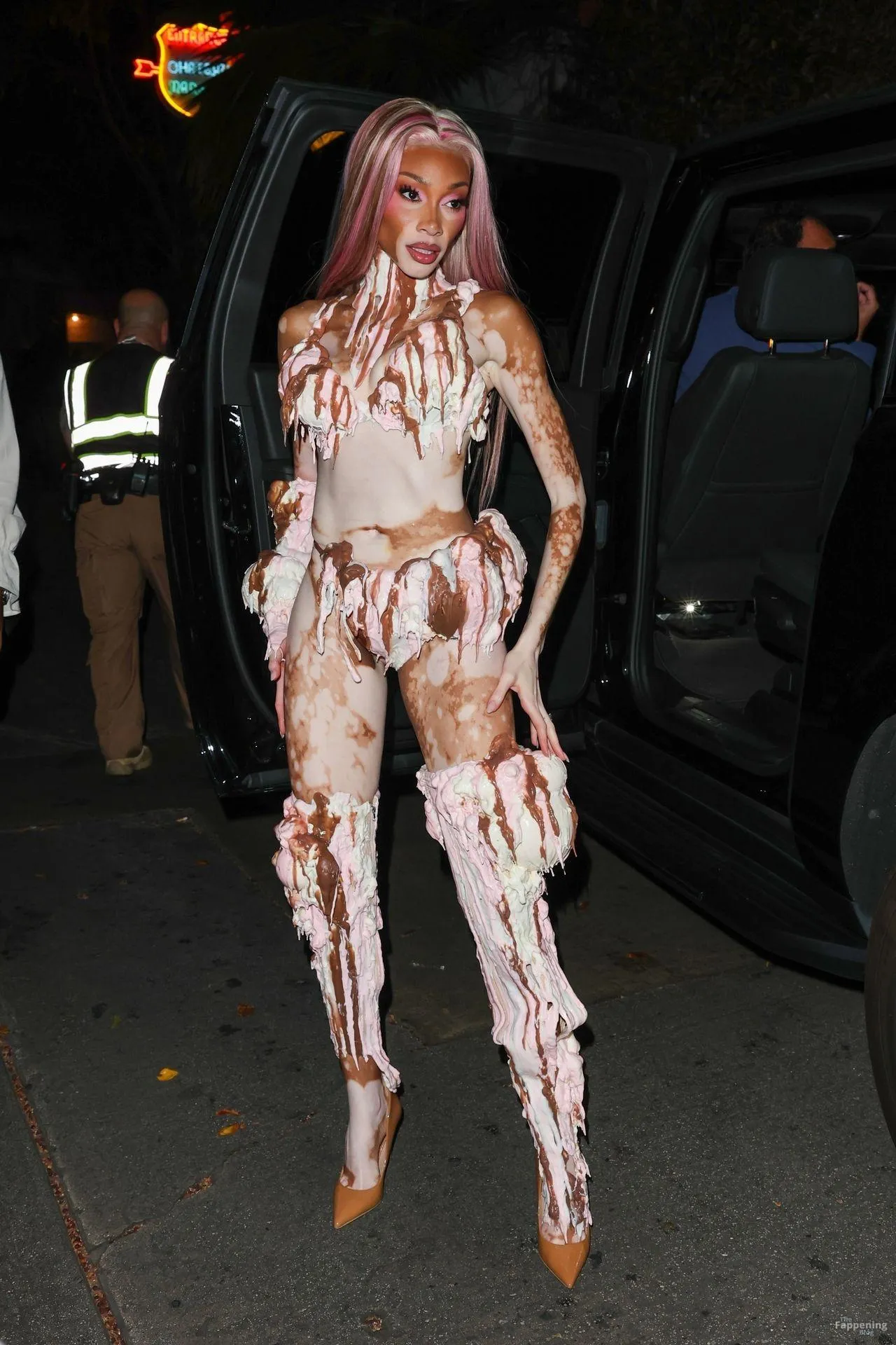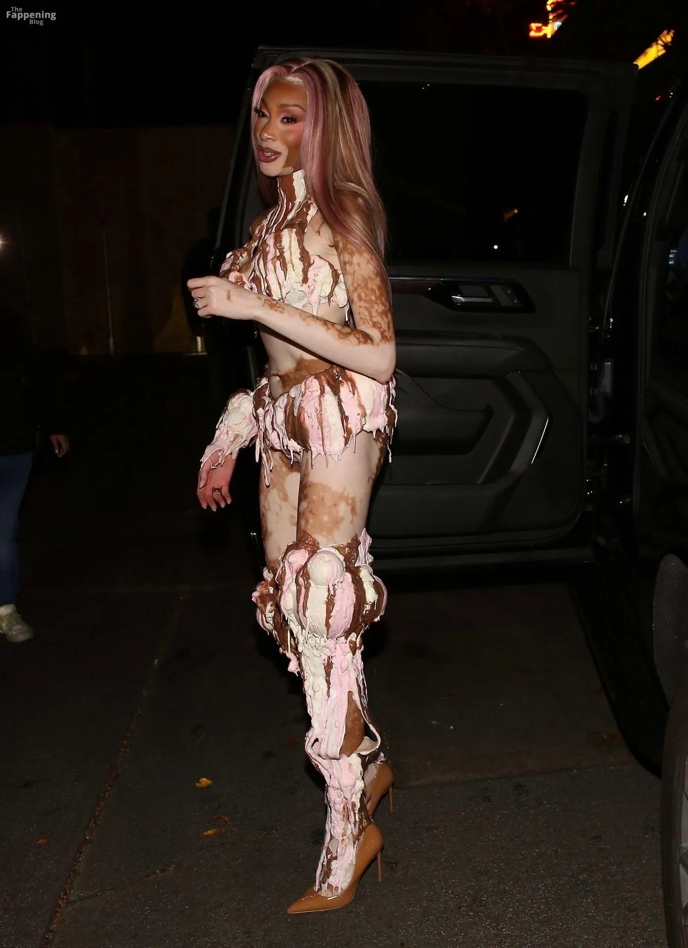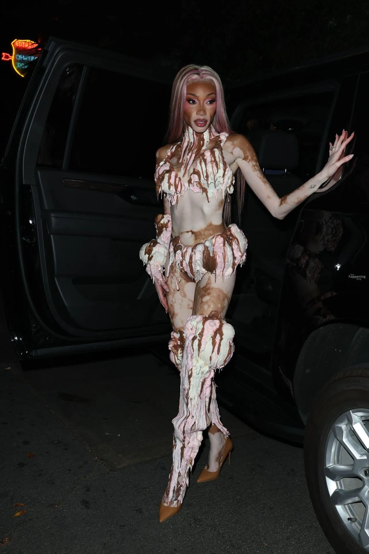 Model Winnie Harlow showed up at Vas J Morgan’s big Halloween bash in LA. Check out her ice-cream outfit in the paparazzi pics below.