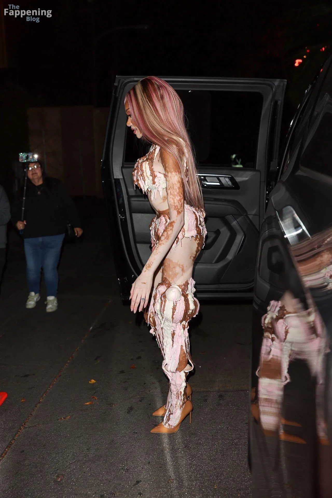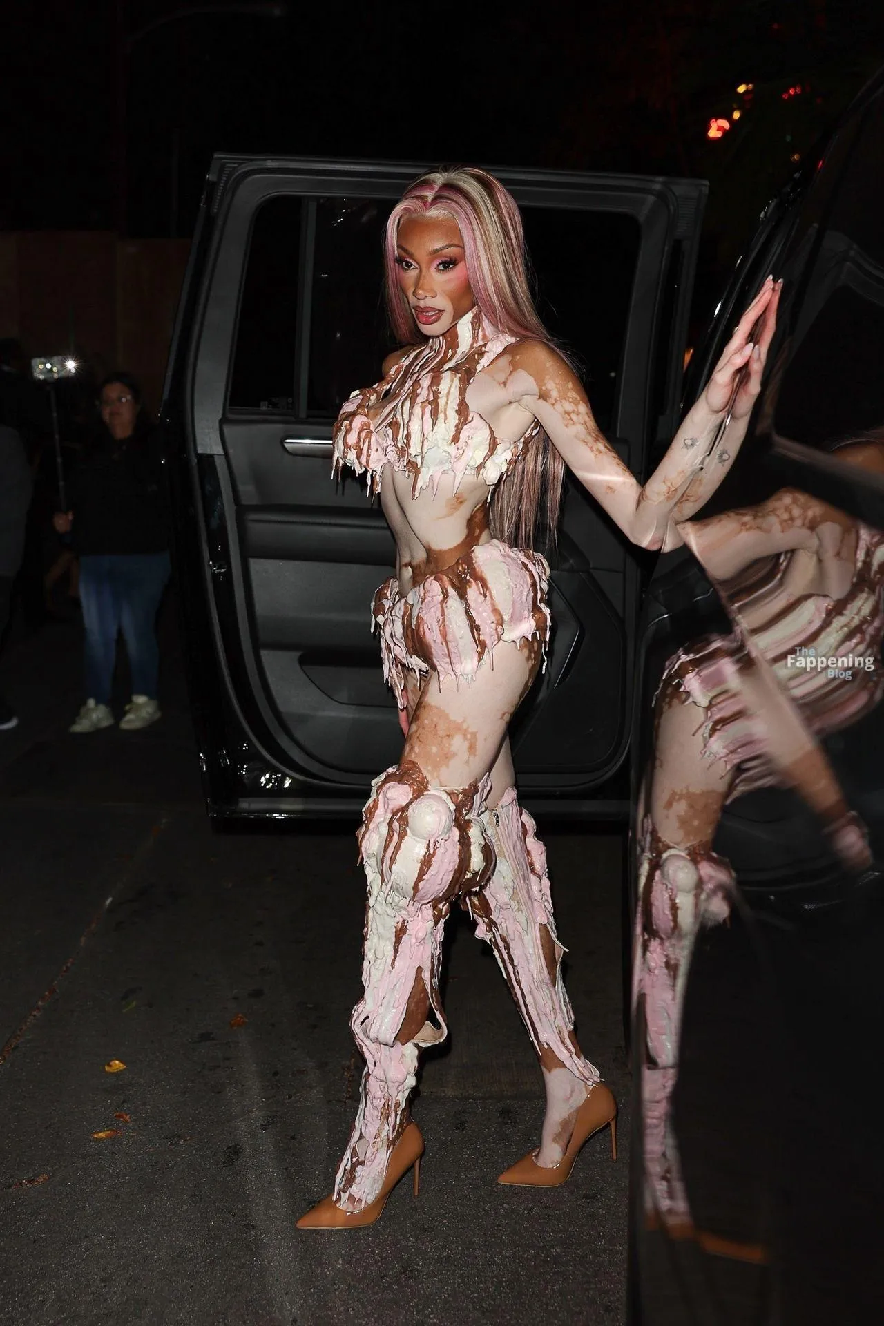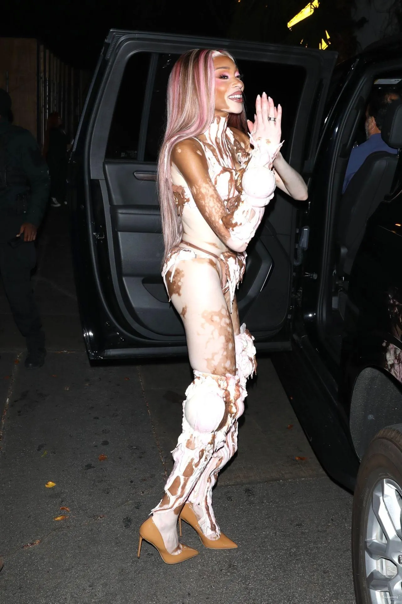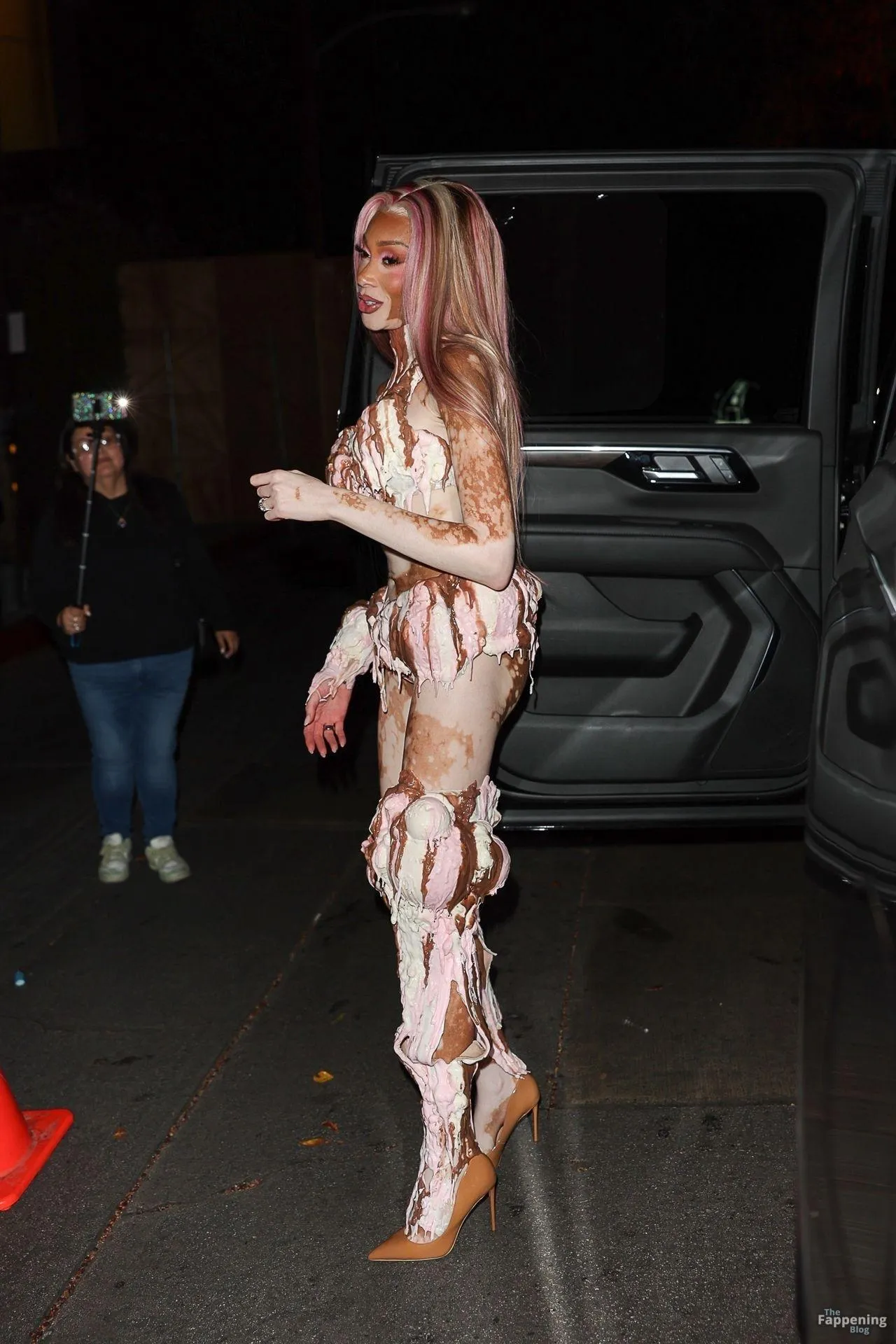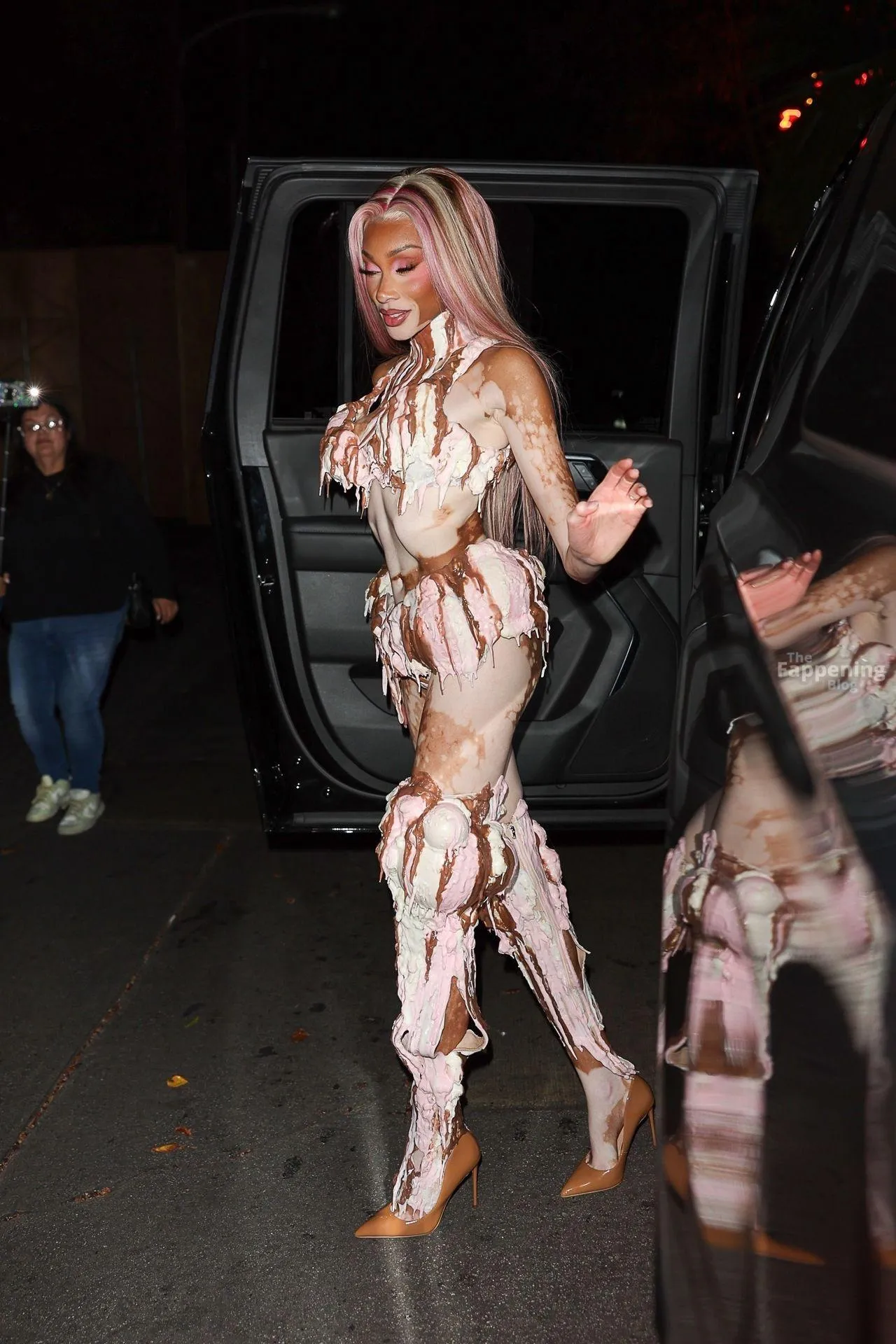 Model Winnie Harlow showed up at Vas J Morgan’s big Halloween bash in LA. Check out her ice-cream outfit in the paparazzi pics below.